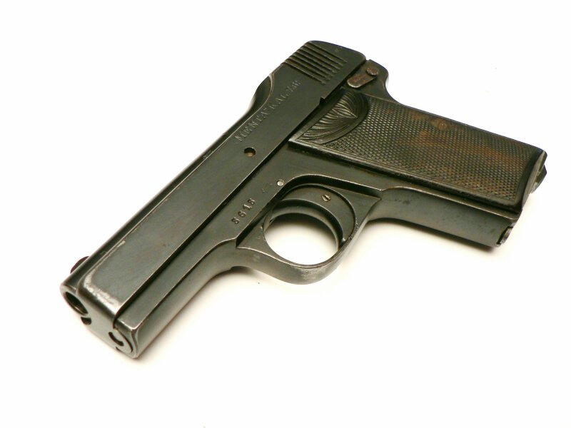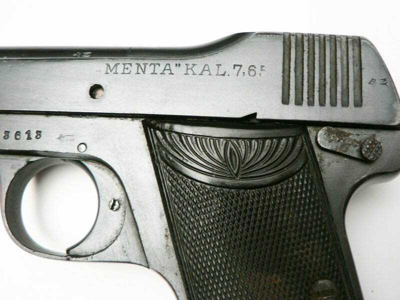 Добрый день думаю это не "чистокровныый" "Бехолла", а его копия - пистолет "Menta". "...Пистолет "Бехолла" выпускался в период с 1915 года и до 1918 года для Германской армии, всего было выпущено около 45 000 пистолетов. Производством занималась компания "Беккер и Холландер" в Зуле, по названию которой пистолет получил свое название (Becker & Hollander). Позже компания была переименована в Stenda Werke и пистолет получил название "Stenda". Другие немецкие оружейные фирмы также производили этот пистолет, известны копии под названиями Menz, Menta, Leonhardt. Варианты Мента и Менц кроме калибра 7,65 мм также производился под патроны калибра 6,35 Браунинг, чего не было у оригинальных Бехолла и Стенда...." (http://gunsite.narod.ru/beholla.htm)