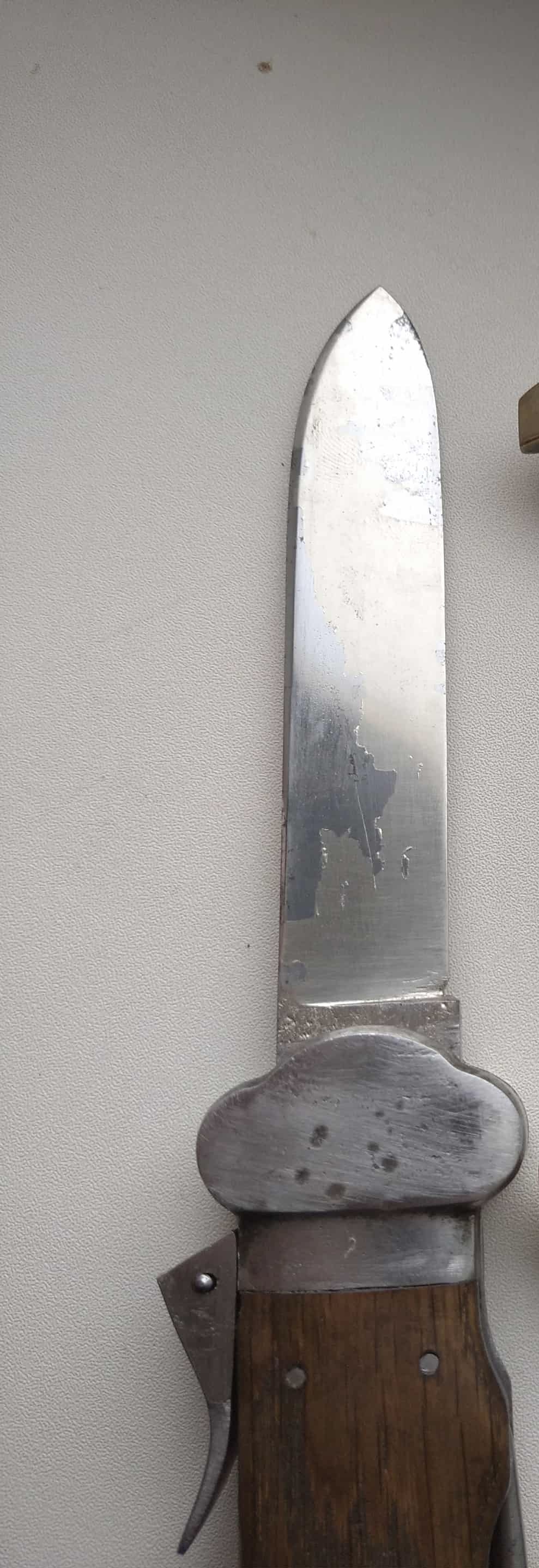 День добрый. Похож на современную копию. На оригинале под кнопкой должен быть цифровой код . И хорошие фото клейм на лезвии и на шиле . Надо больше информативных фото для установления оригинальности. От этого будет зависеть цена. С Уважением.