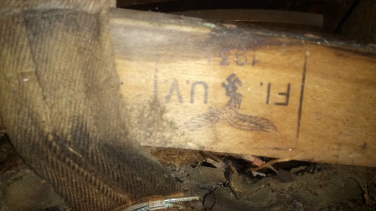 Нашли еще стул,к сожалению обивка пострадала,но зато видно отлично печати 1935 год