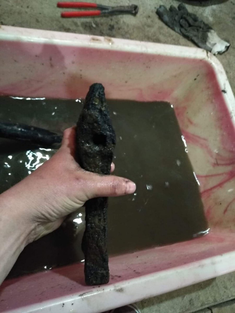 Дякую!За допомогу.Ще таке щось цікаве було знайденно,але не знаю що може бути.У отворі була деревина.Знайденно у річці