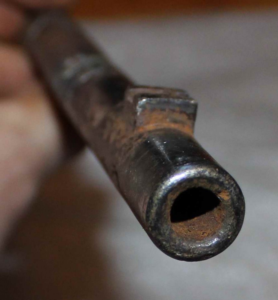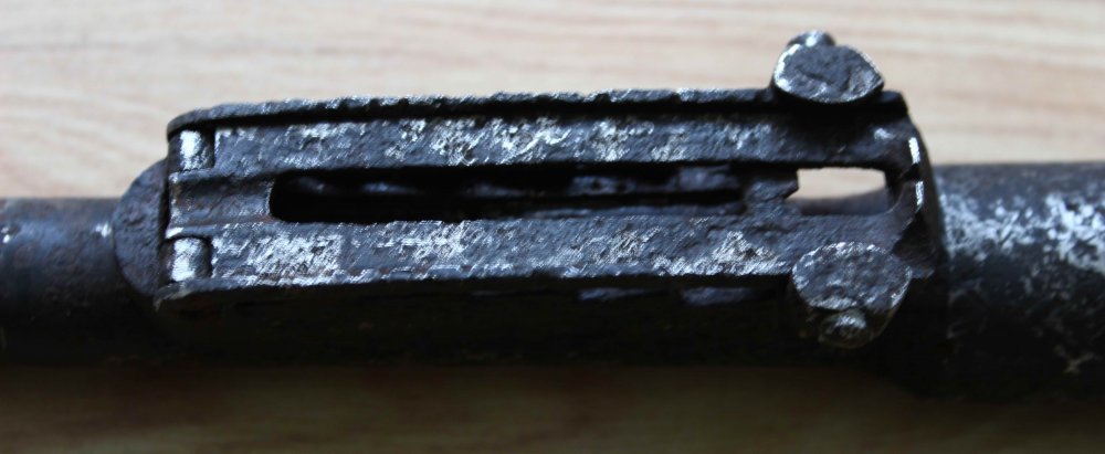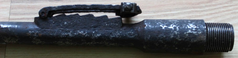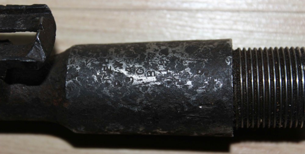 Появился еще один. Деактив три пропила : ( , патронник хороший, много клейм, 1940г. Постель прицельной планки треснута. Один глубокий пропил возле мушки заварен.