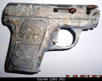 Как я понял он дюралевый? Если так то это игрушка пугач называется ,стрелял пробками глиняными, слыхал я отаких игрушках послевоенных ,обычно старьевщики обменивали на тряпки, у детворы бешенной популярностью пользовались но тряпок надо было мнооого здать чтобы получить такую игруху. Хотя литейной формой для него мог послужить вполне реальны ствол