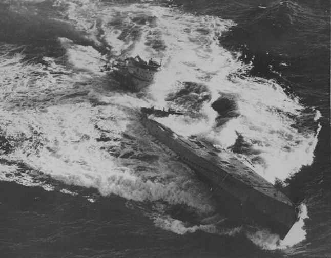 1.Тонущая подлодка. Снимок с борта Авенджера Уильямса.