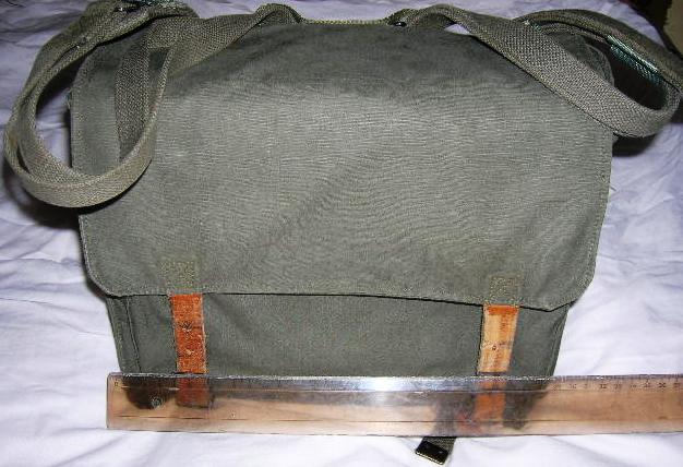 1. 30 х 20 х 10 2. Армійський брезент 3. Ременів -2 4. Наявні кріплення знизу (2 пари) для переноски додаткових вантажів 5. 2 відділення + внутрішня кишеня 6. Зберігання - склади армії BW Ціна - 200 грн.