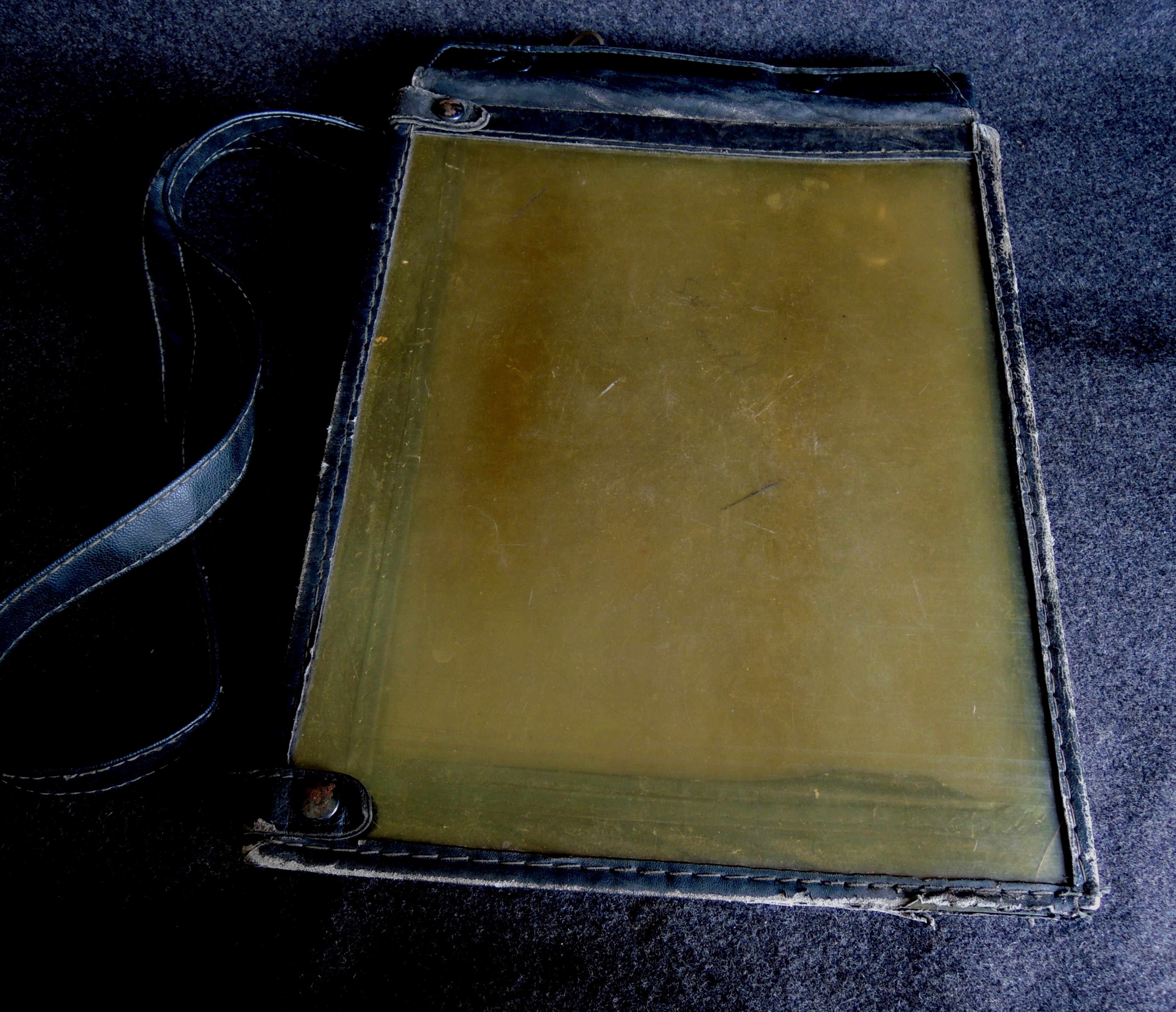 Сумка 1963 года выпуска, в хорошем коллекционном состоянии, без порезов и разрывов, но имеет поверхностные трещины в районе сгиба верхнего клапана (фото 3).