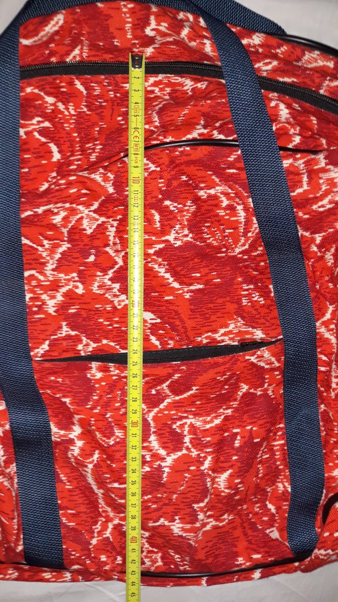 27.Отличная легкая дорожная сумка в отличном состоянии.Доп.большое отделение снаружи+малое отделение внутри.Можно переносить и на плече,длина ручек это позволяет.
