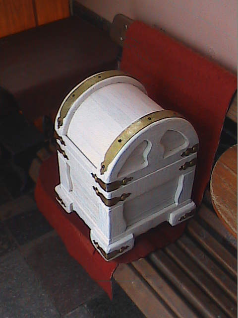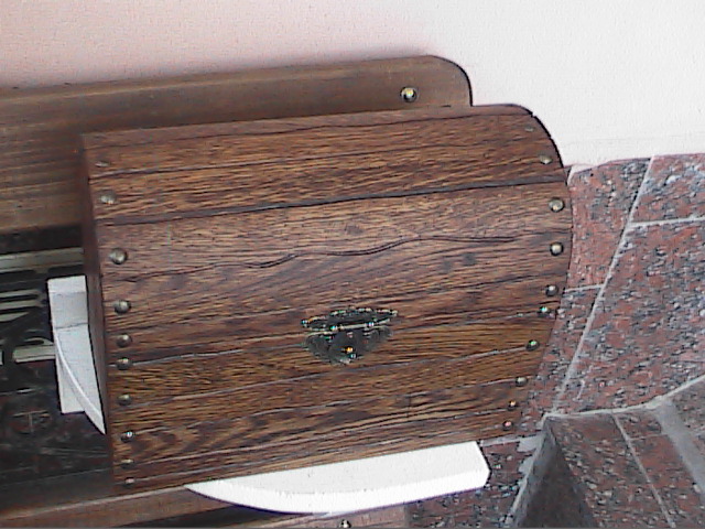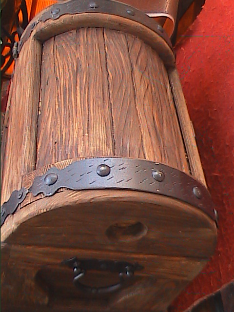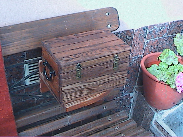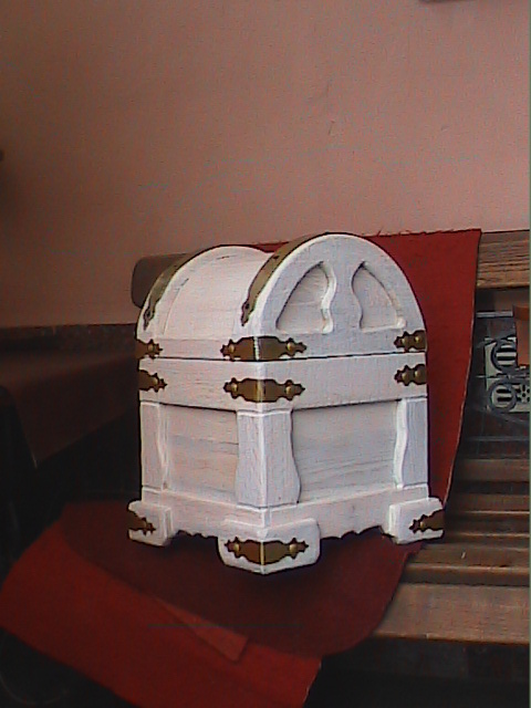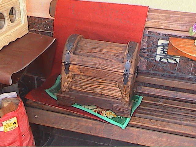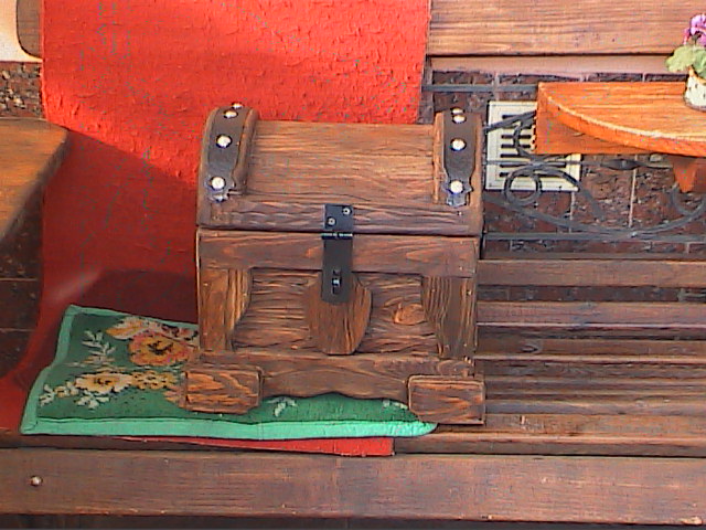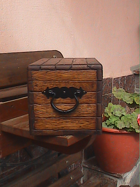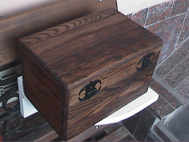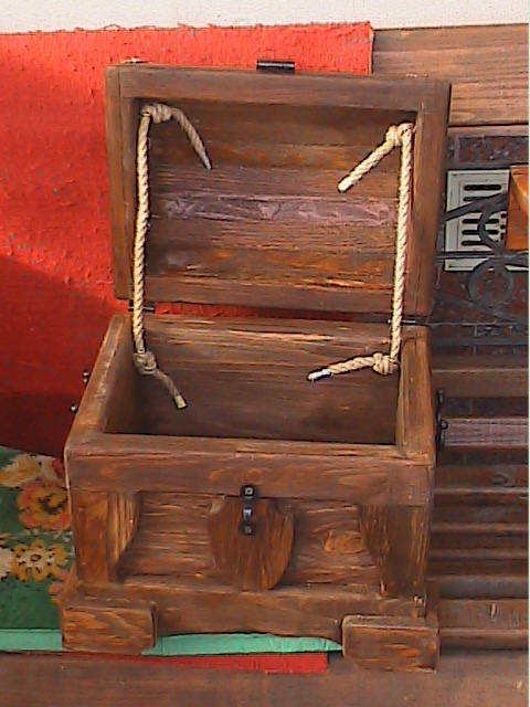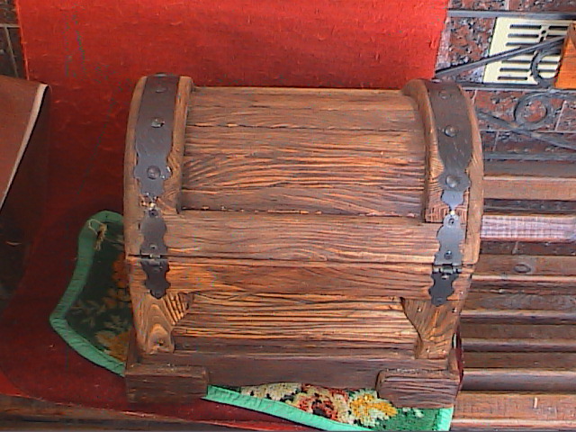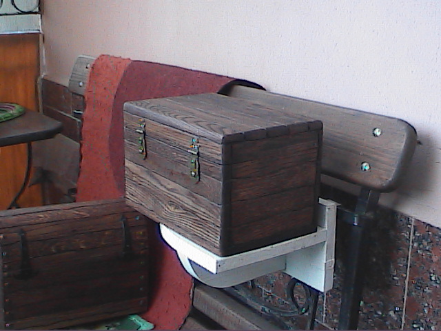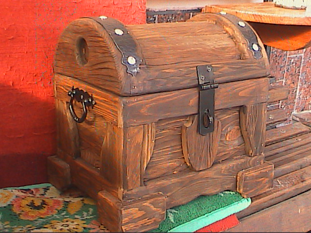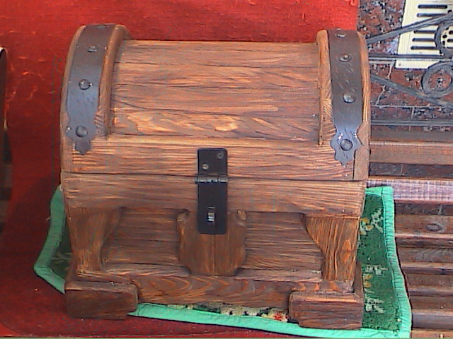 №16.. экспериментальная модель с маленьким размером .можно носить под рукой. размер 400х300х380 вес около 10 кг.изготовлен из массива сосны , стилизация под Пиратский сундук. древесина искусственно состарена, тонировка палисандр ,по бокам две ручки под старину (заводское качество Испания). арки кованные на заклепках. лицевая планка (ляда) под навесной замок.. цен 2000 гривен.
