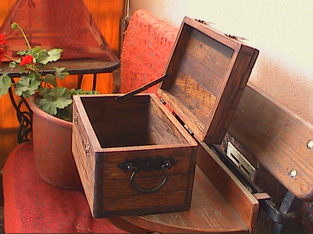 № 18. Ларец из дуба размеры 330х180х250. тонировка для проявления текстуры дерева пропитка воско- маслом.. по желанию могу поставить ручки кованные (Испания) которыми комплектую все свои большие сундуки. цена 800 гривен.