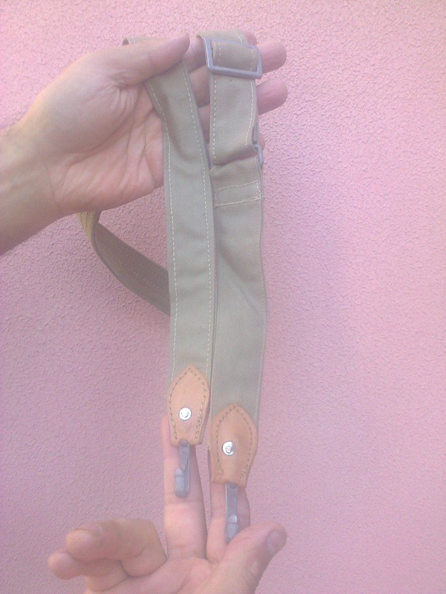 Вітаю.Прошу небайдужих та професіоналів висловити свою припущення стосовно сухарки,що придбав нещодавно.Своєї думки не маю,вперше бачу таку річ.:eek:.Дуже якісна.з щільної тканини.що нагадує брезент,в комплекті ремінь для носіння через плече та два допоміжних ремінця з шкіри.Колір сумки світло зелений.Вся фурнітура металева.гудзики можливо з алюмінію.Вся обшива світло коричневого кольору з натуральної шкіри.Сухарка з середини має два відділення.На сумці клейм не виявлено.Зате воно присутнє на наплічному ремені.Чорнильне,синього кольору. Нерозбірливий.Перша велика буква G.далі нібито J .На фото показав,як міг.Стоіть ,щось схоже на дату,але нерозбірливо..Може хтось мав чи бачив,щось подібне..Чекаю на всі припущення.