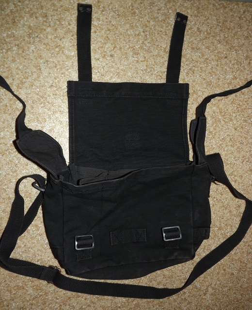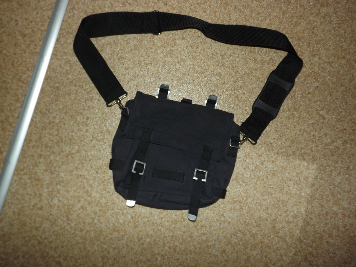 Лот № 6. Реплика сухарной сумки Бундесвера. новая, цвет черный, плечевой ремень не отсюда, размер около 23х22х8 см.