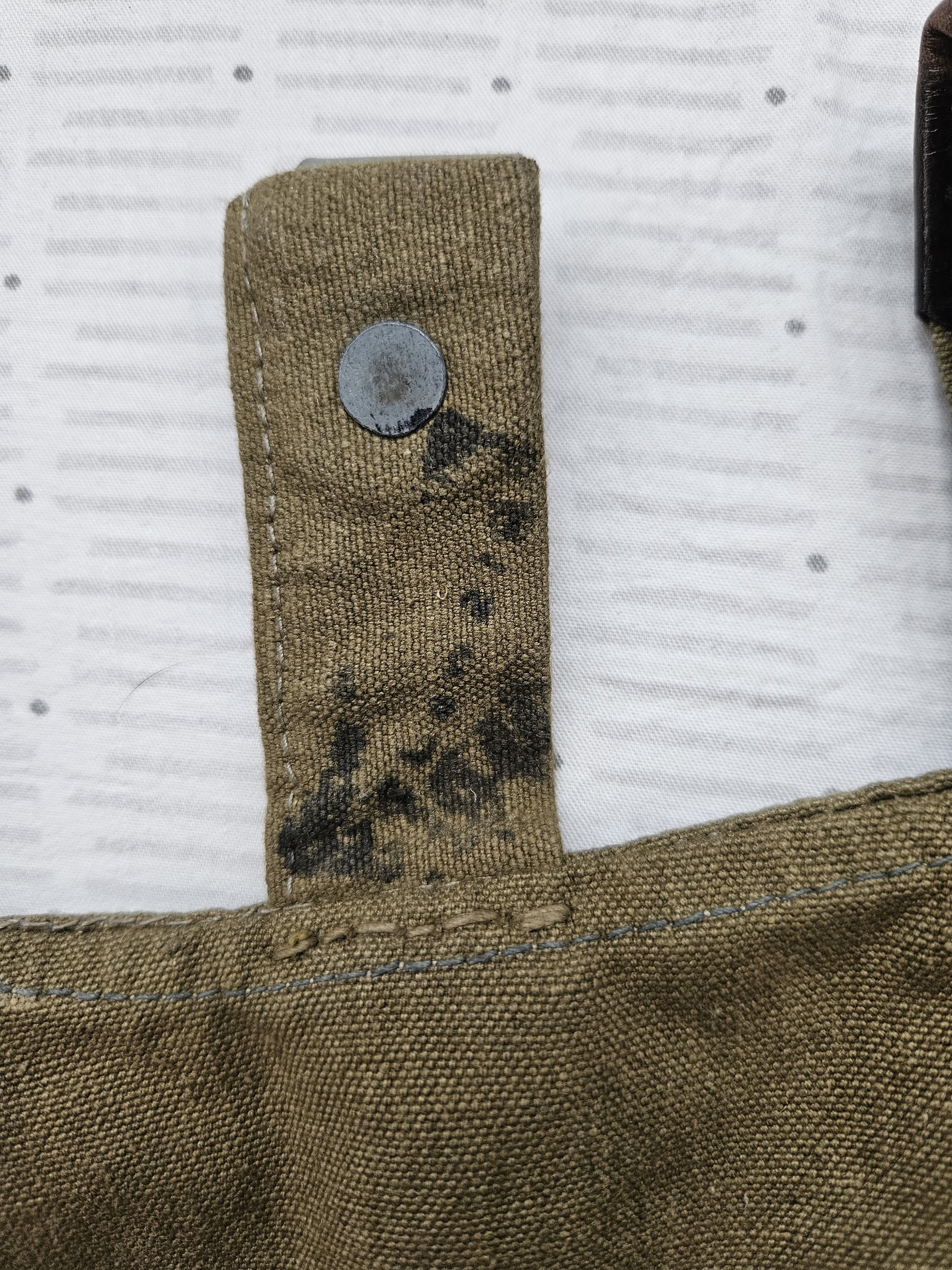 Ткань сумки - очень похожа на оригинальную, но вероятнее всего не она. Задние D-кольца вероятно новодельные также как и поясной стальной крюк. В общем складывается впечатление что изготовитель пытался изобразить очень похожее на оригинал изделие....и в общем-то у него получилось.