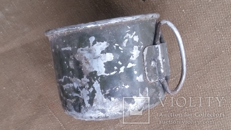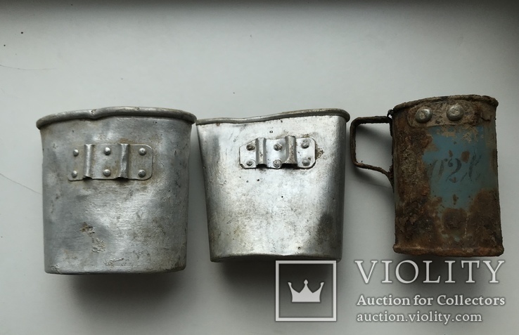 В первый раз вижу кружку с полковым клеймом. Насчёт рисунков и подписей - лично у меня на полочке только А-В фляга подписная. На второй фото очень интересная ручка с эрзац-котелка. Уж больно она короткая.