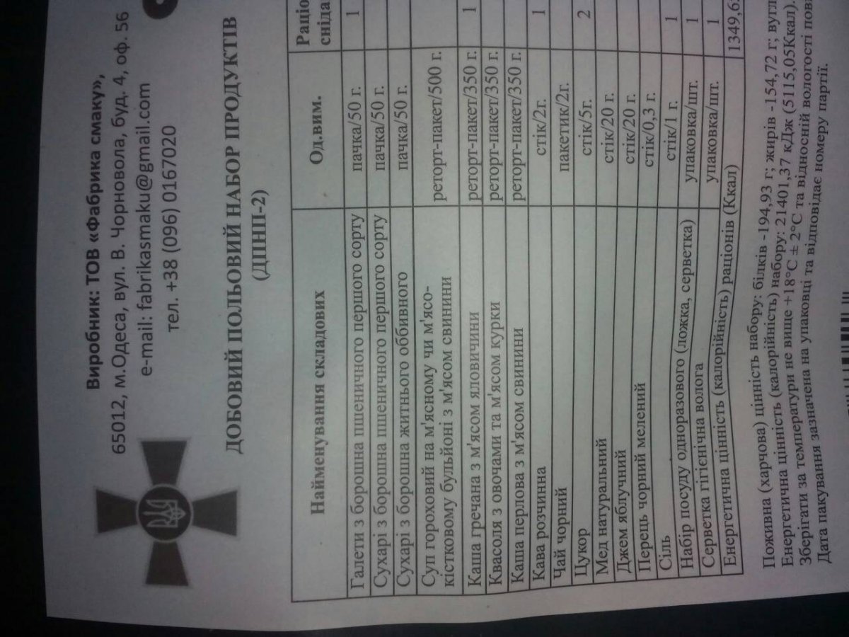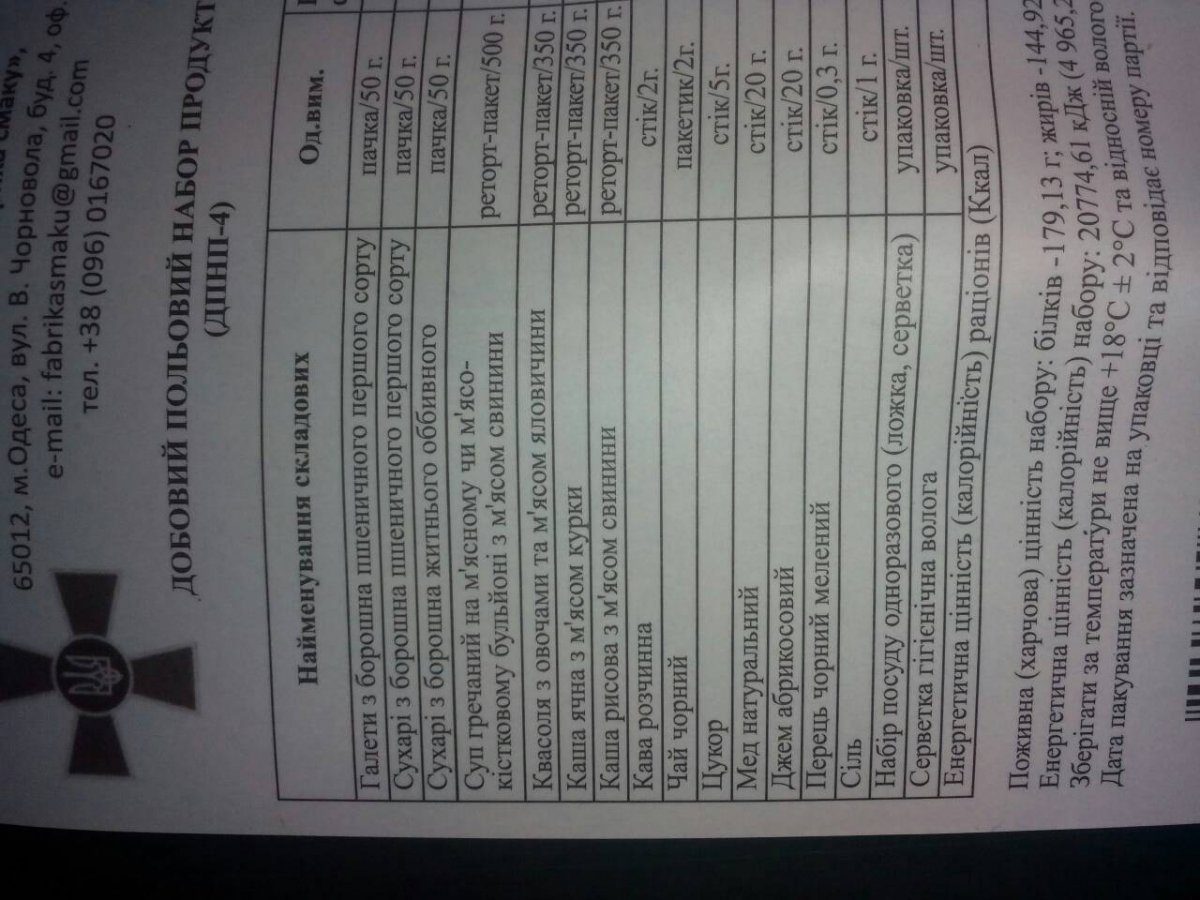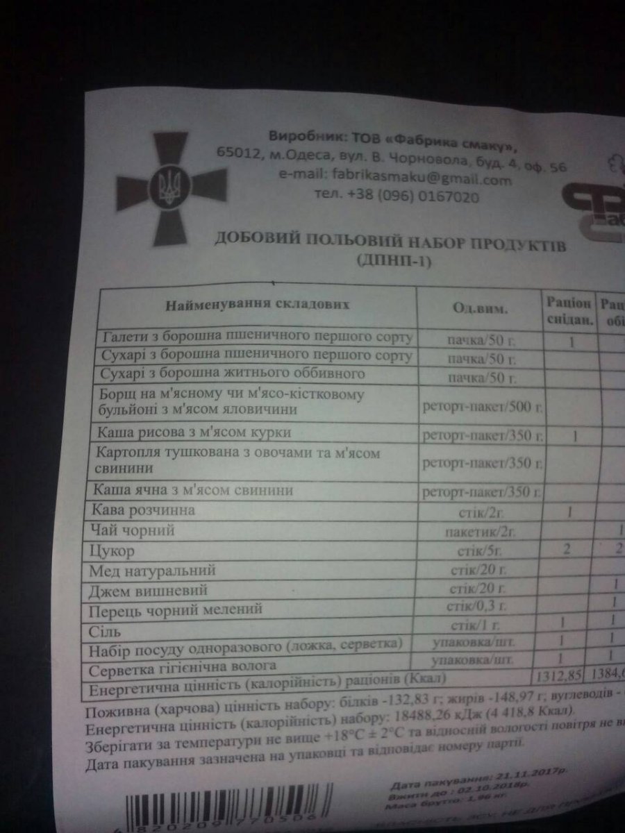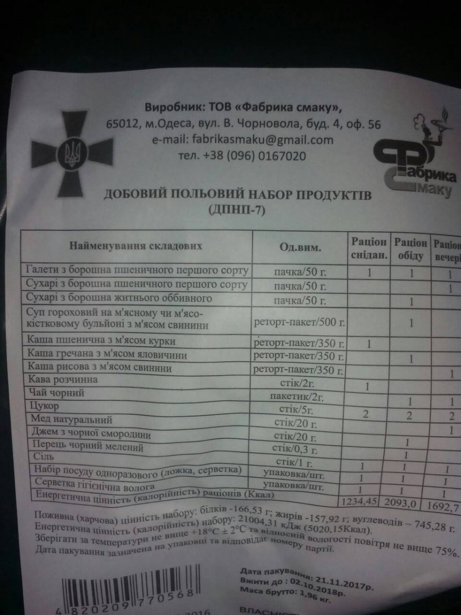 Появились новые сухпайки. Есть по 4 штуки каждого из 7 меню. Фото позже. Цена 140 грн набор. Годны до 02.10.2018