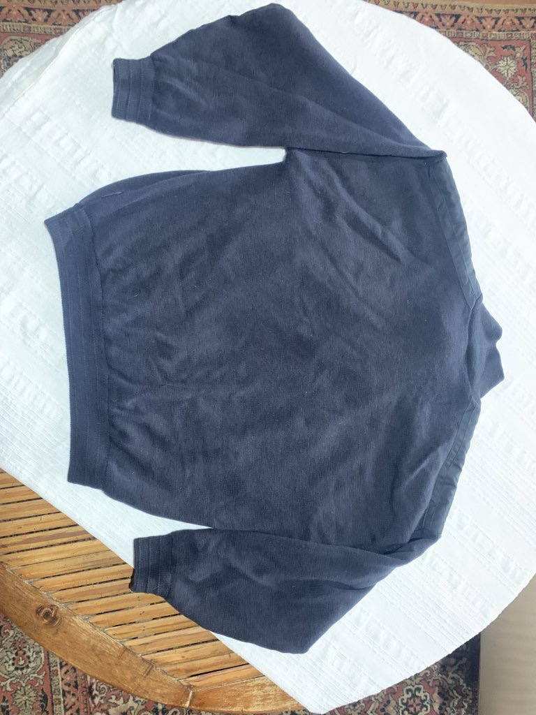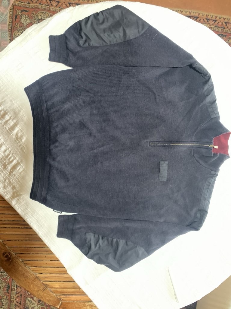 Светр , з підкладкою, темно-синього кольору, дуже тепліший . На тверду 5 Не продувається.заміри: плечі 62( спущені) рукав 53( за рахунок спущеного плеча довший) по грудях 64, довжина 65( без коміра) по низу 4 5( тягнеться) Ціна 600 грн