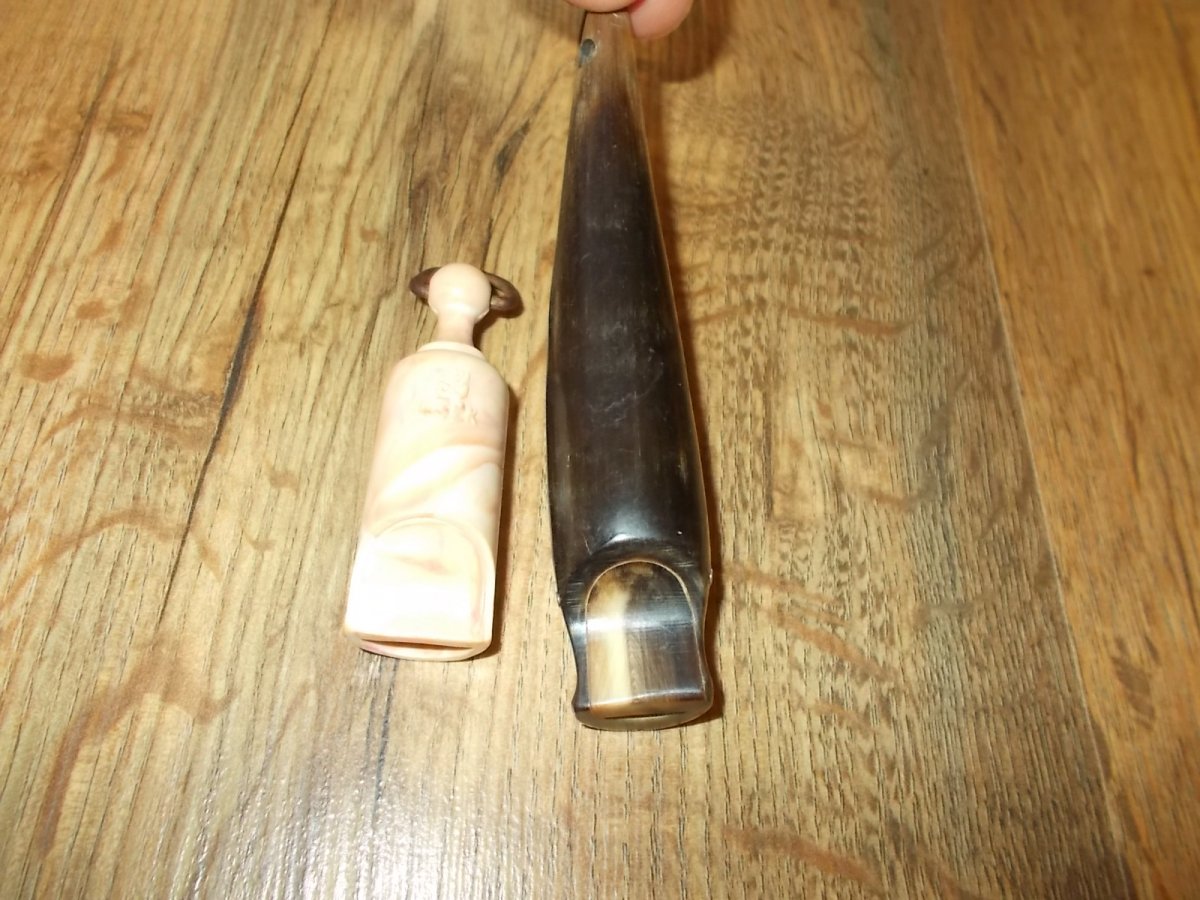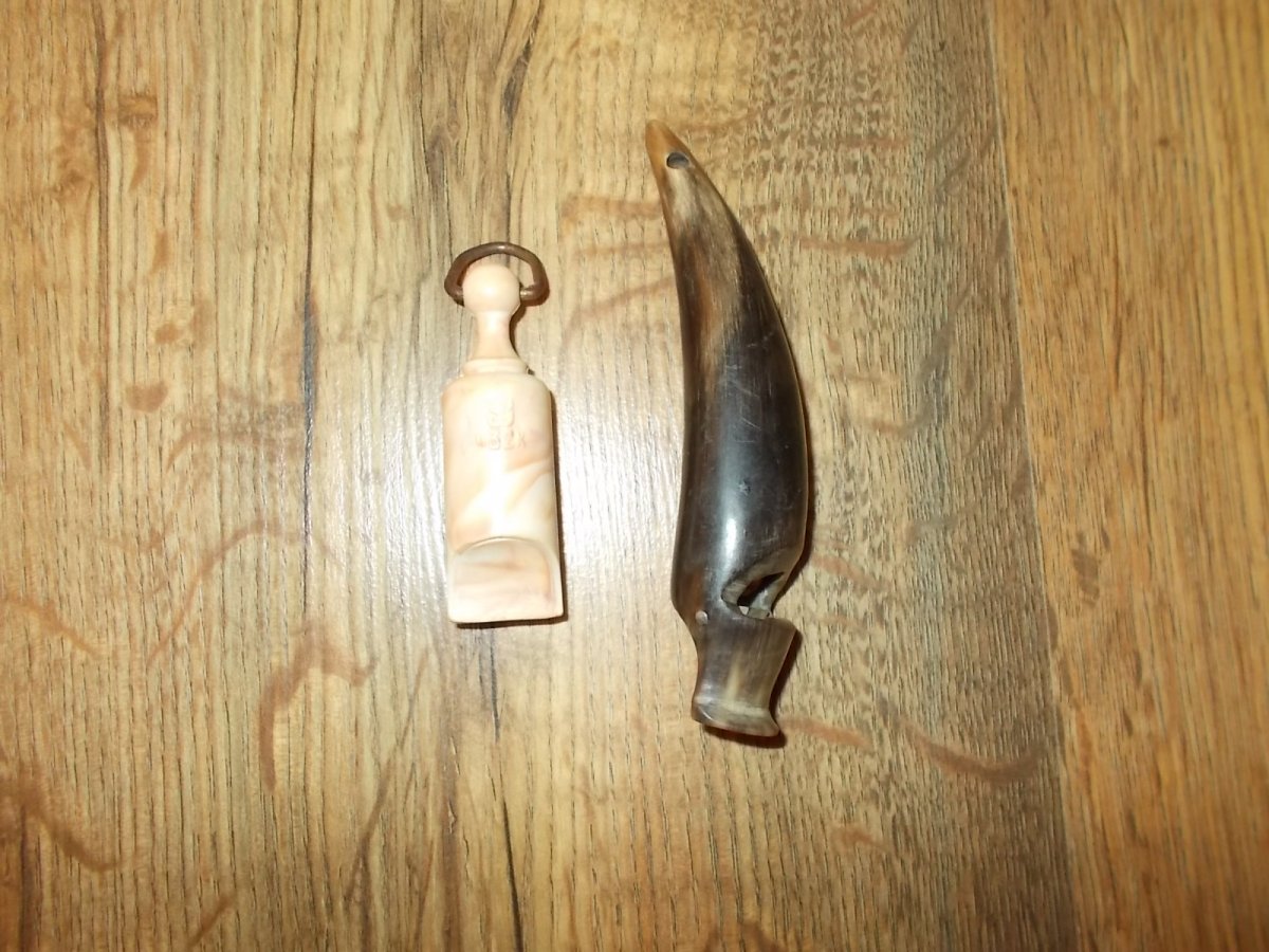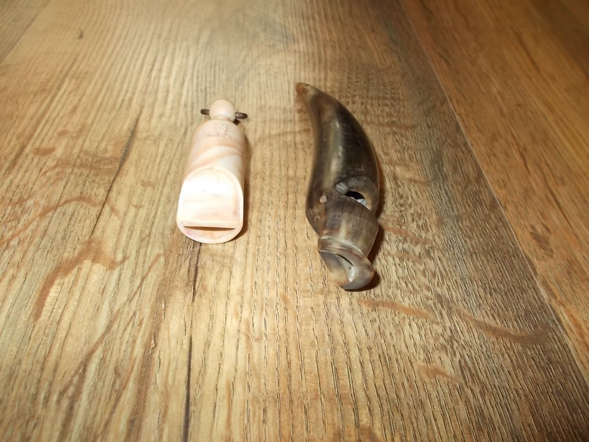 одним лотом - 130 грн. Пластмассовый и роговой оба свистят. внутри шарики. доставка Нп. укрпочта +15 грн.