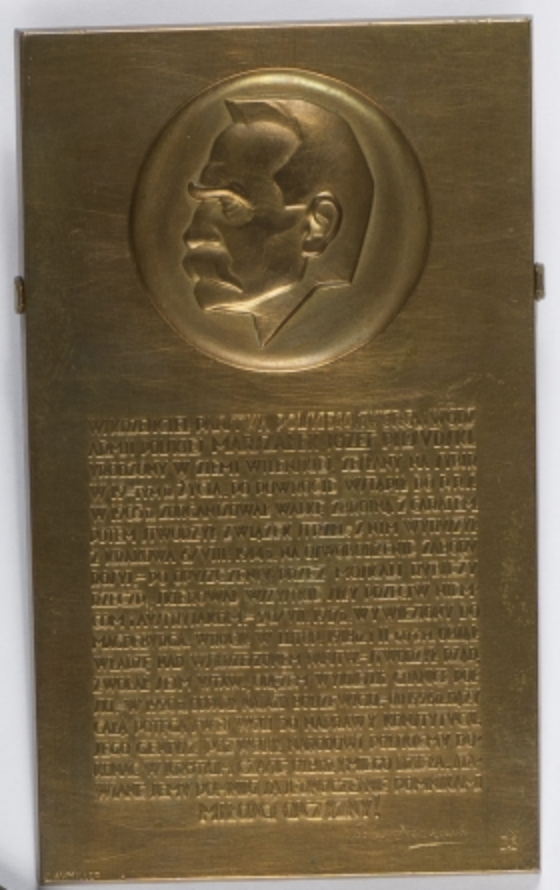 В 1931 году была выпущена такая плакетка с манифестом Пилсудского. Это похоже знак из той же серии, которого кстати найти не получилось. Размер плакетки 10х6 см.