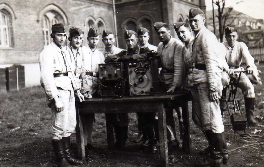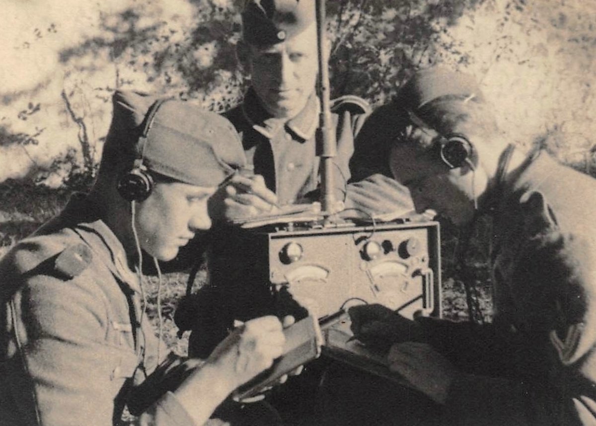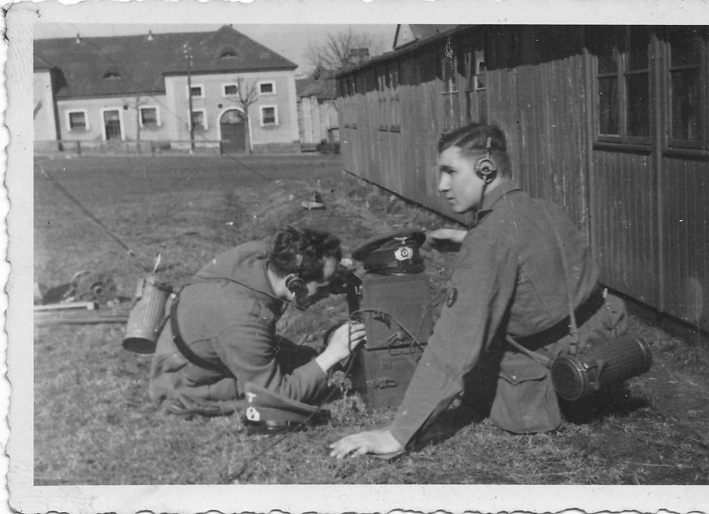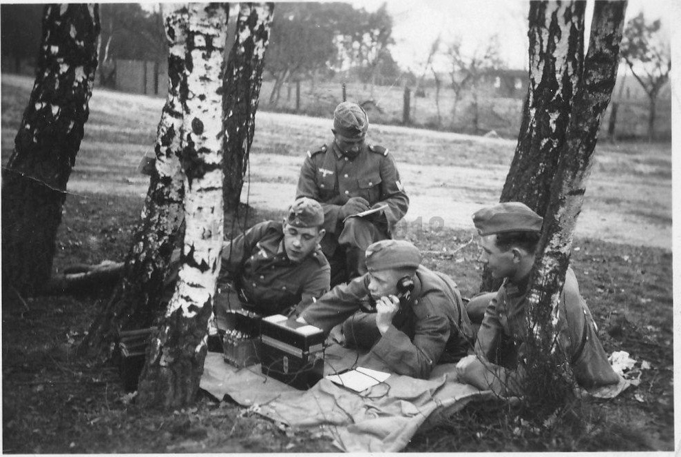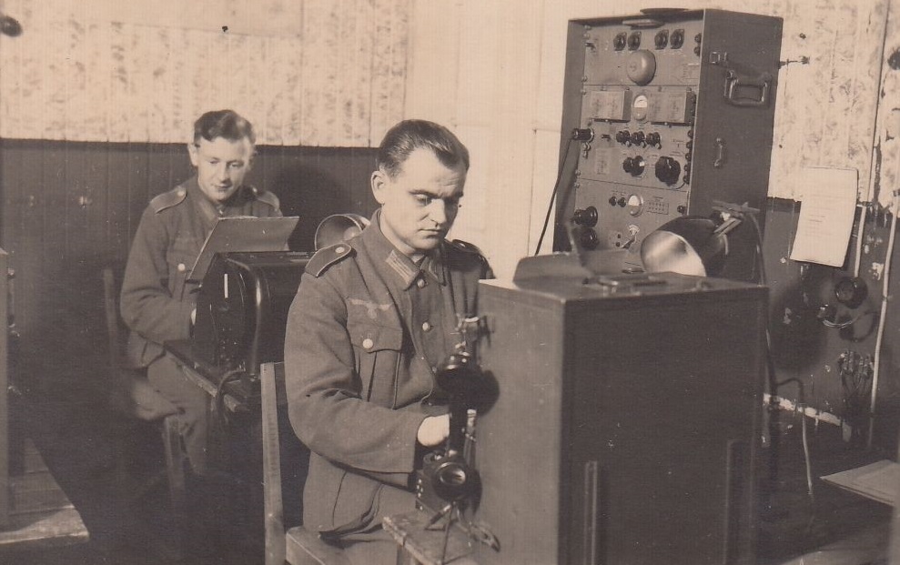 Wehrmacht Fernmelder Funker mit Funkgerät in einem Keller Häuserkampf