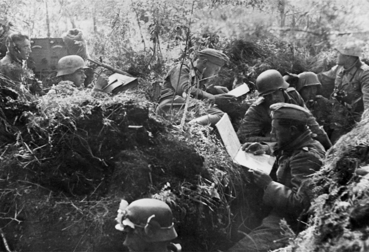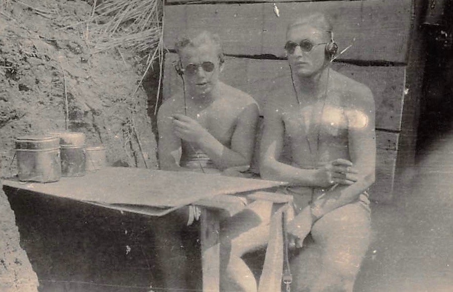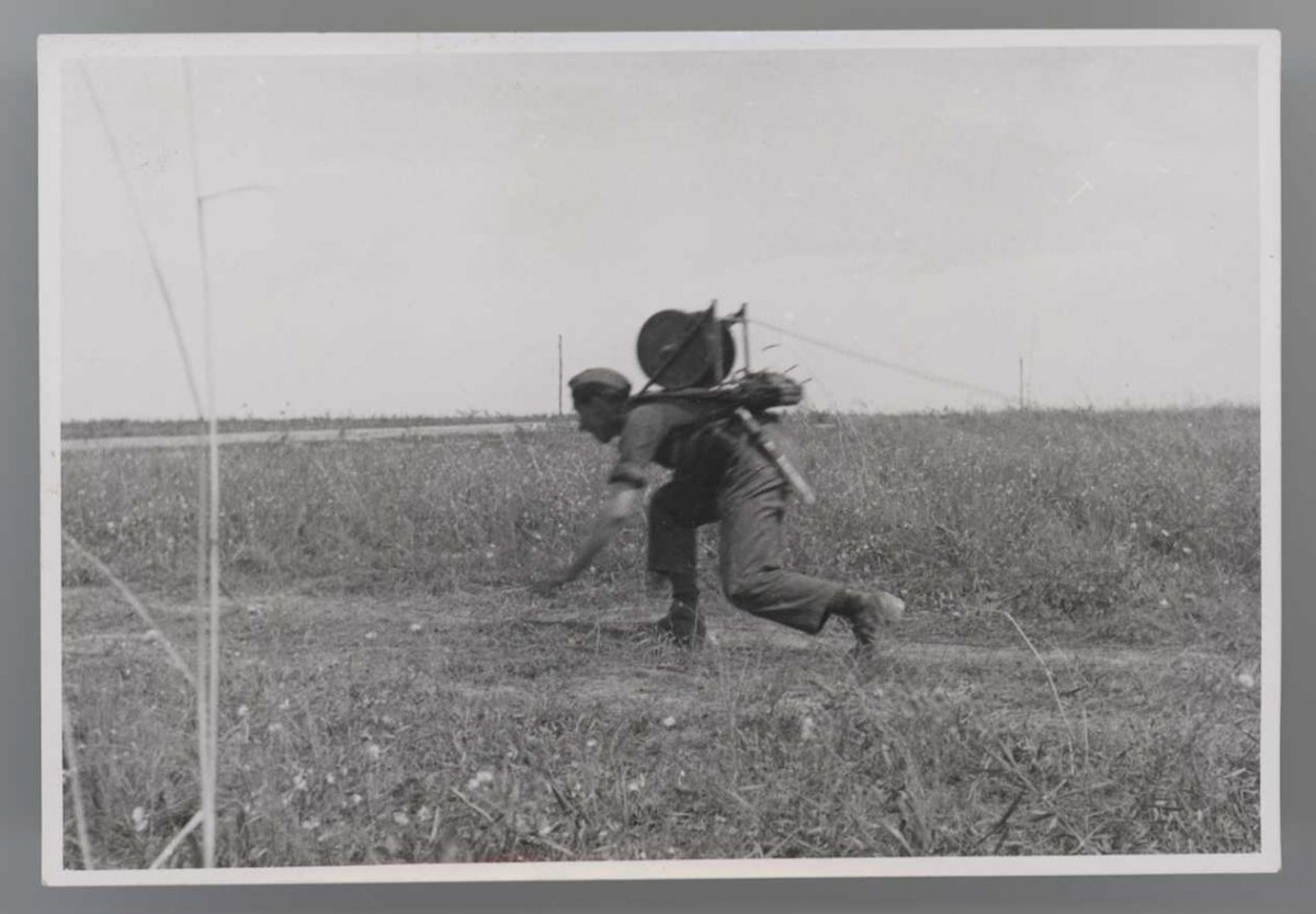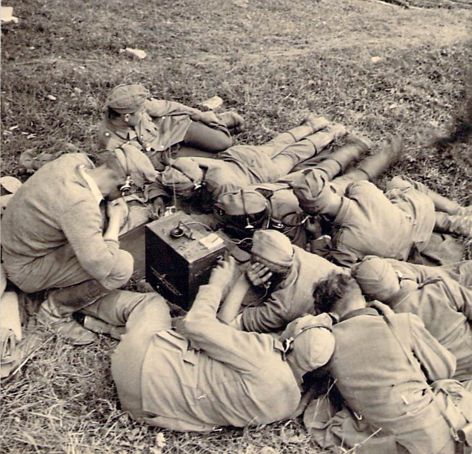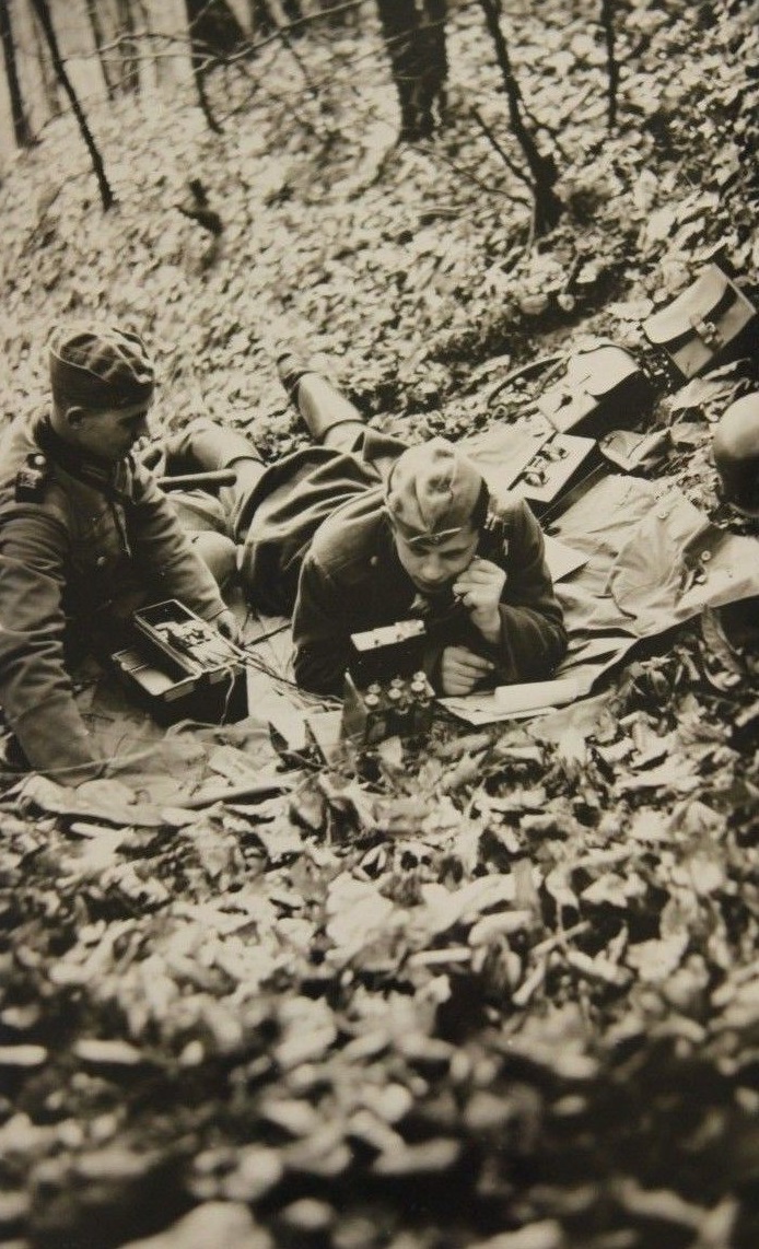 Wehrmacht Fernmelder Funker mit Funkgerät in einem Keller Häuserkampf