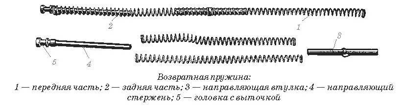 пружына спусковой тяги. возвратная пружына. выбрасыватель. разобщитель автоматического спуска. ражок. можна коп врабочем состоянии