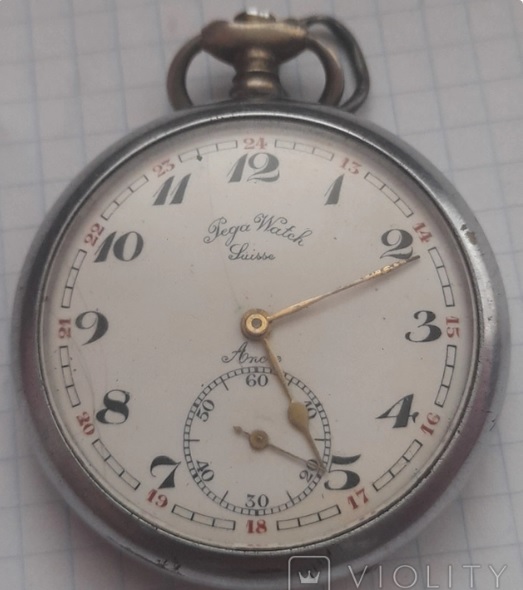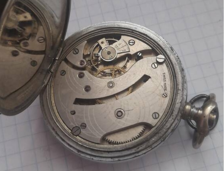 Есть вот такие часики-карманки. Я понимаю что это очень бюджетный сегмент, но все же хотелось у уважаемых часовщиков прояснить два вопроса: -примерные года выпуска,довойна-послевойна? -это действительно Швейцария? Описание подробнее-калибр 40мм.,эмалевый циферблат,надпись TRAVELS WATCH и ANCRE над секундным циферблатом.Очень хорошее состояние корпуса(что смущает,нет заметных следов бытования).Текст и медальки на пыльнике выполнены накаткой. На механизме одно только SWISS MADE,номеров не нашел.На ходу...