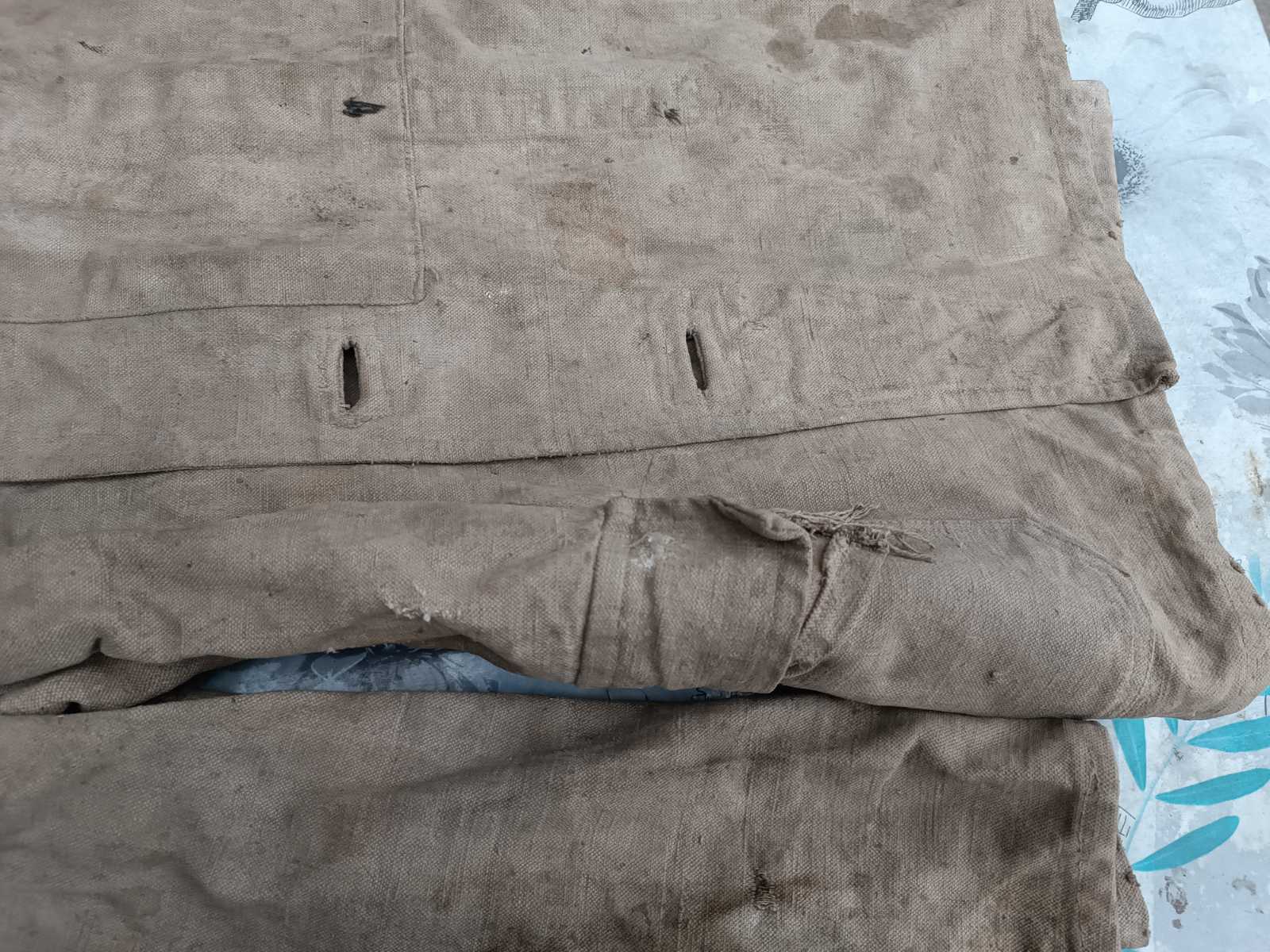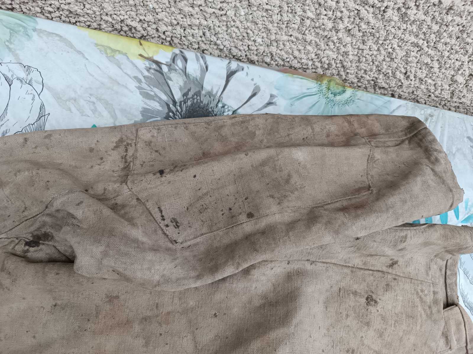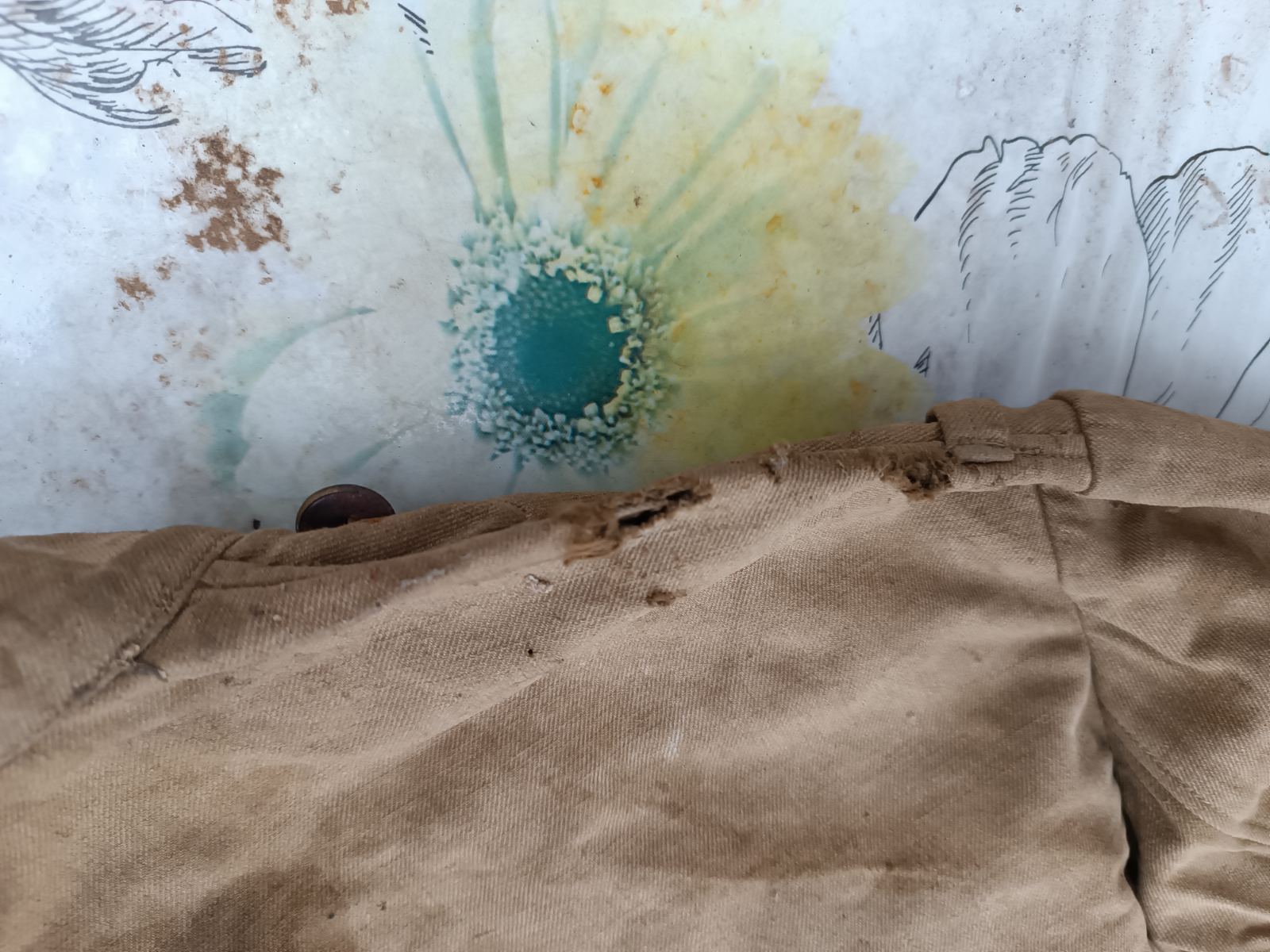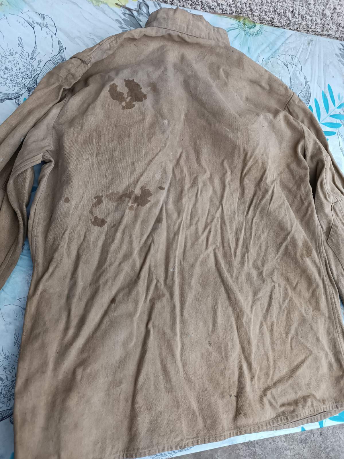 1. Куртка брезентова. Більшості гудзиків нема. На плечі пляма. Є клейма