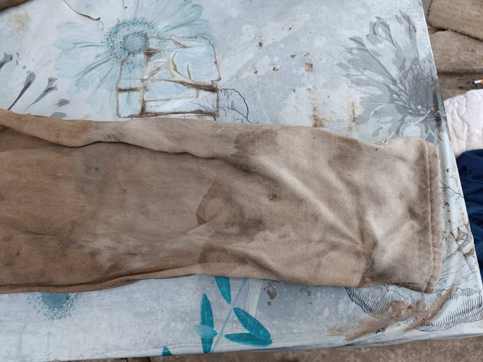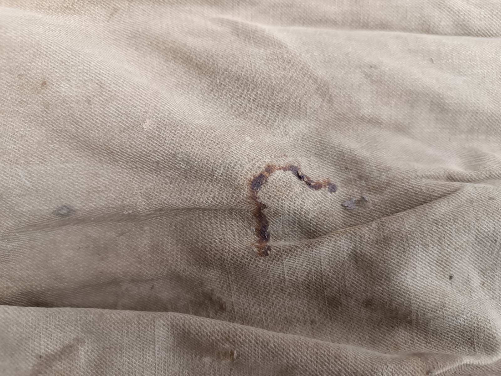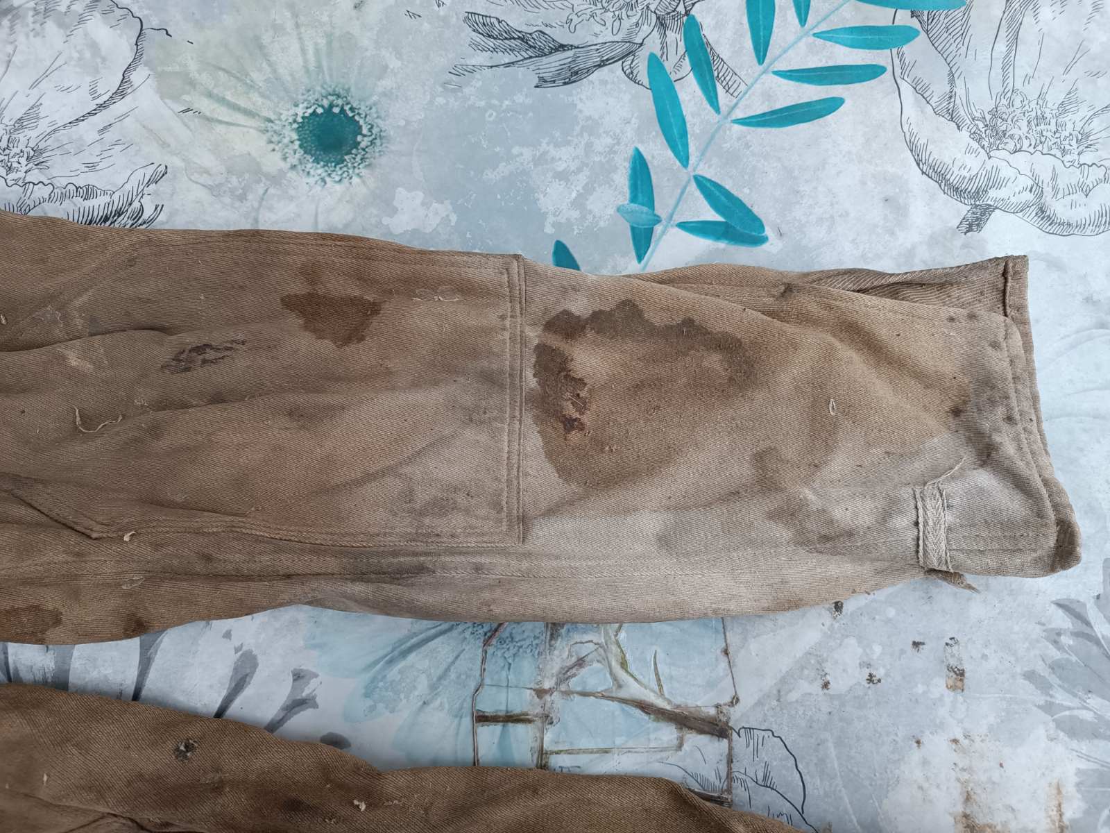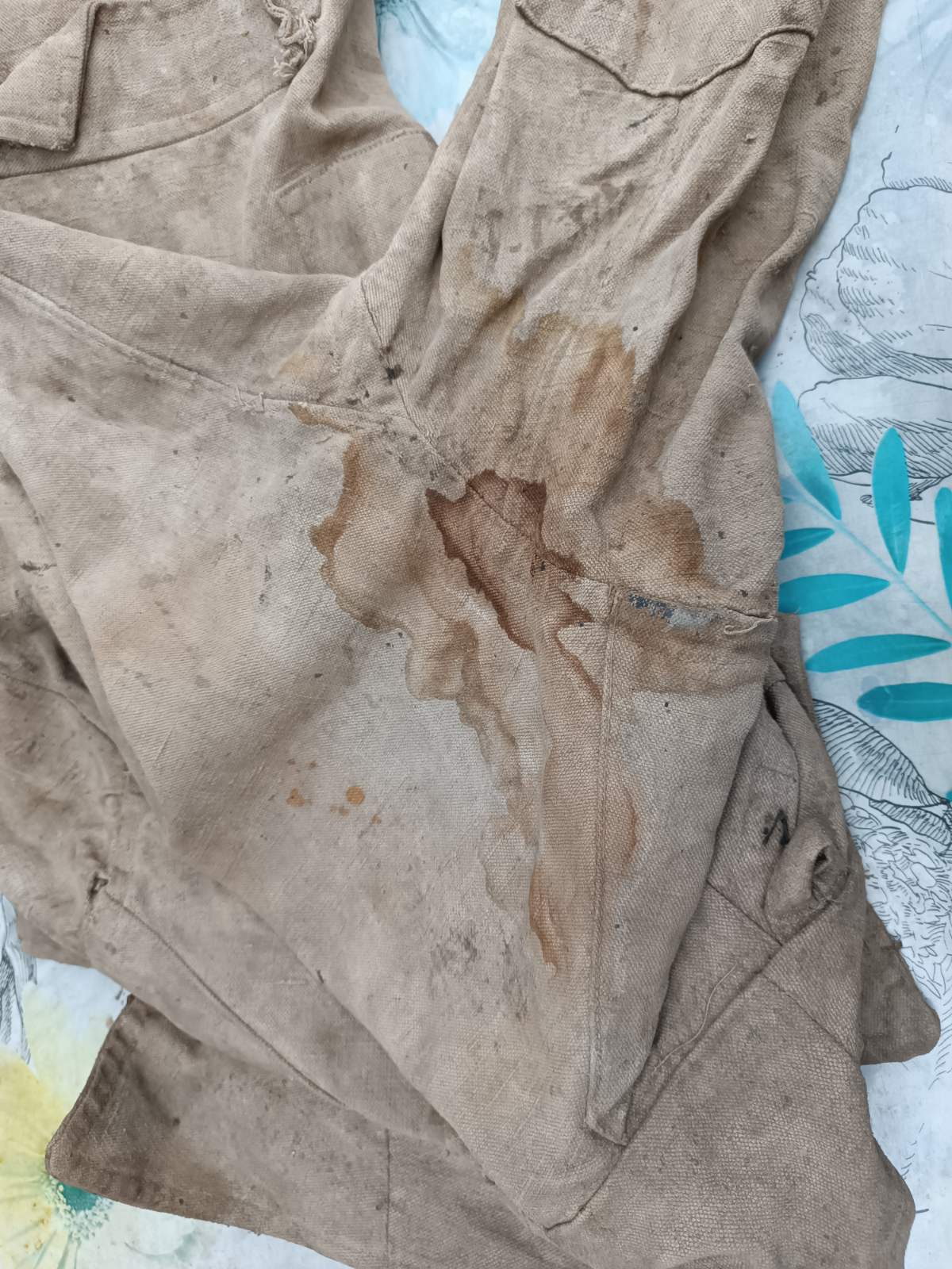 1. Куртка брезентова. Більшості гудзиків нема. На плечі пляма. Є клейма