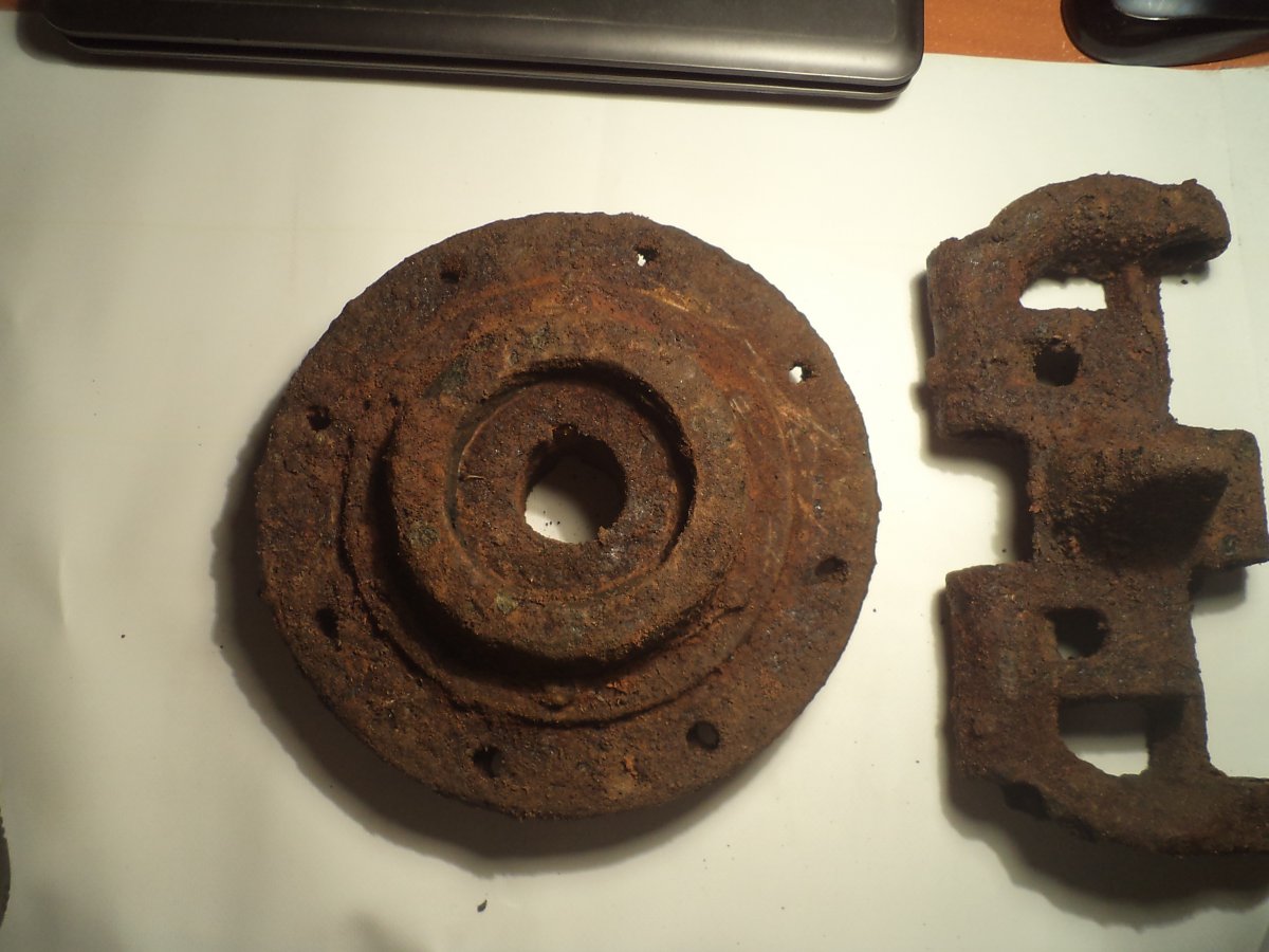 Приветствую уважаемых форумчан. Только из лесу притащил эту железяку и прошу определить. Лежало в одной яме с траком от Т-26 и обрезиненным катком. Чем то напоминает часть катка Т-28