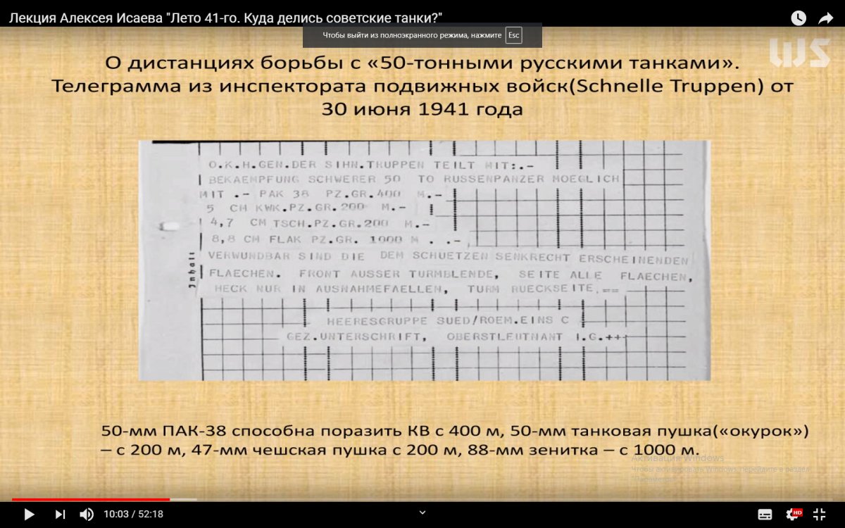 Им то тестирование сто лет снилось. Сам Исаев сказал,что летом 1941 года немицы крутили на члене все наши Т-34,КВ-1 и прочие К-В2 И сам достал из кармана подкалиберный снаряд 50 мм. В 2014 году он еще правду говорил. А на лекции для WG фуфло не скажешь,там и без него все знали ттх советских и немецких танков.