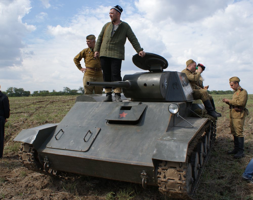 Считаю, что должно быть плевать на разные мелочи и нестыковки - главное, что ребята этим занимаются в принципе - с душой и по серьезному и не зажимают свои трудны от простых людей - респект им из Западной Сибири Ну а танчик Т-70 - достойный представитель дешевой тотальной мобилизации - можно конечно было месяцами ждать полноценных Т-34 и КВ, пока переезжавшая на Восток промышленность вставала на ноги, но броня нужна была здесь и сейчас - в определенный момент, в определенном месте, для определенной атаки - учитывая слабую проф.и моральную подготовку новобранцев РККА в 42-43 годах, после погрома 41-42 годов, призванных на службу - наличие хоть какого-то танка, очень способствовало их боевому духу - так вот Т-70 и был их хоть каким-то танком, при чем в умелых руках для немецких "двоек" и "троек" он был вполне опасен, а они (особенно тройки) до осени 43 года составляли вполне приемлемый процент в панцерваффе.