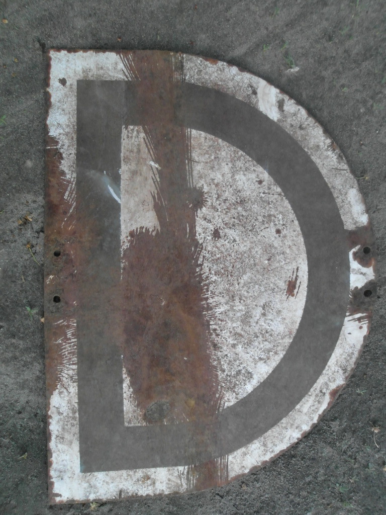 Если в таком положении рассматривать этот знак , то может он крепился на шлагбаум или что то в этом роде.Что мог означать знак с буквой " D" ? Какое предупреждение или информацию ? Я учил английский по немецки вообще не понимаю .