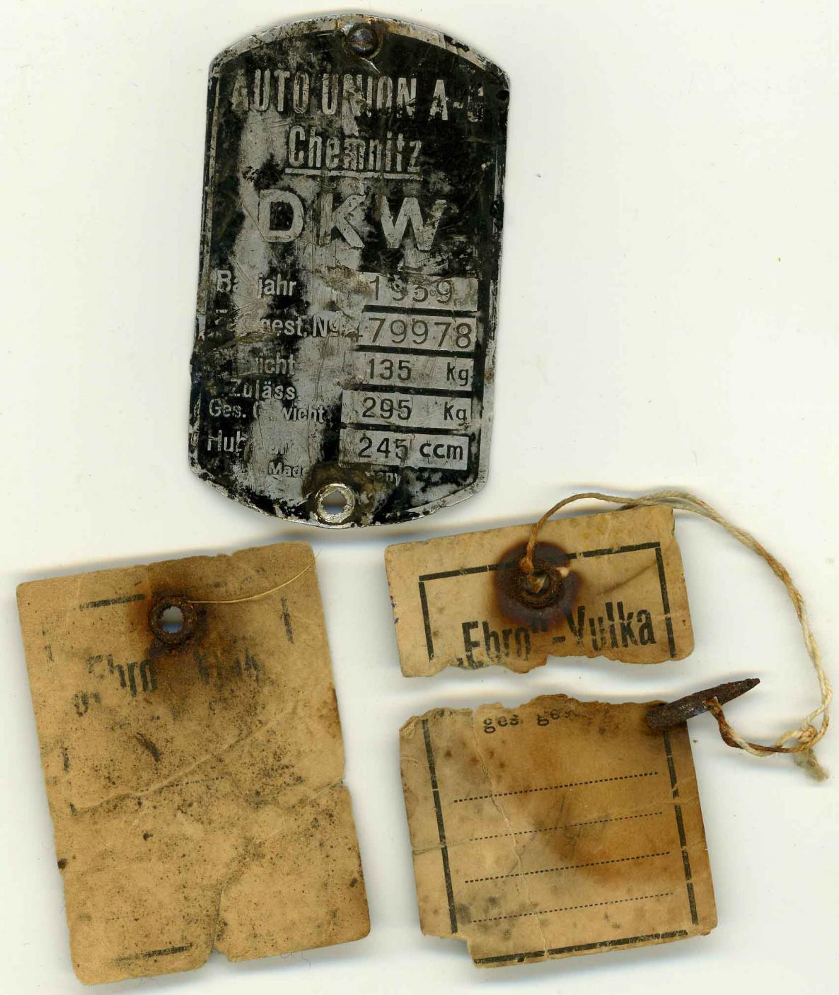 табличка на мотоцикл DKW 1939 г. и бумажки находились в сиденьях. 100 евро + пересыл.