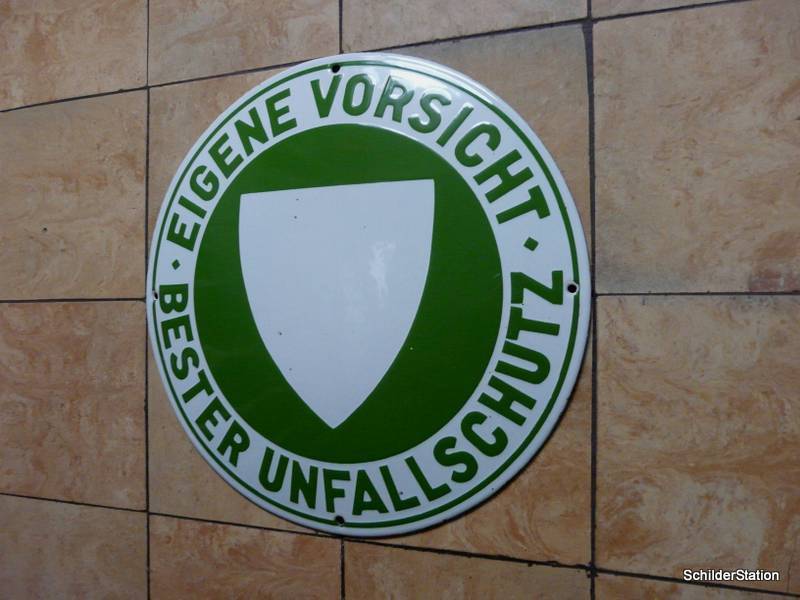 Применялось примерно так Но информации о использовании таких эмалированых табличек нет, это скорее всего выдумка. Попробуйте найти сами https://www.google.com/search?q=eigene+vorsicht+bester+unfallschutz А Вы её лично подняли? С ув.