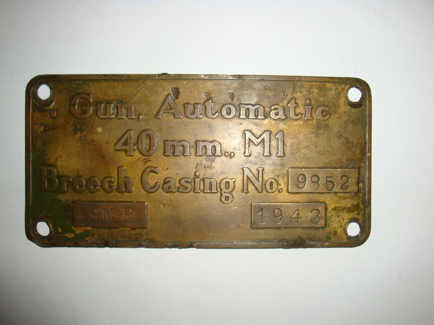 Американская лендлизовская 40MM AUTOMATIC GUN M1 фото пушки ниже таблички от нее и табличка от паровоза или от вагона