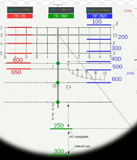 Таблиця для рпг7, під тандемний постріл пг7вр