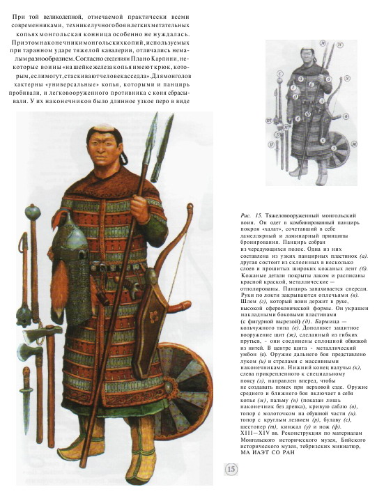 Ну незачем лишние 10 кг на себя вешать ,прямых конных сшибок лоб в лоб, как в европе, у кочевников небыло. Основной урон противнику наносили лучники , а это дело у монголов было поставленно на высший уровень , чему свидетельстует разнообразие видов наконечников стрел.