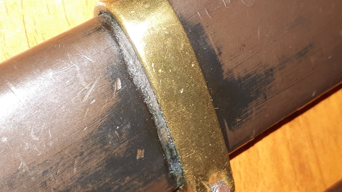 Приветствую. У меня есть такая шашка. Гайка под штык также спилена и какая то слегка не такая по форме. Клеймо нашел под обручем на устье. буква О. Дима возвожно гайки оригинал просто попилили отдуши их.. полирнули. с ув