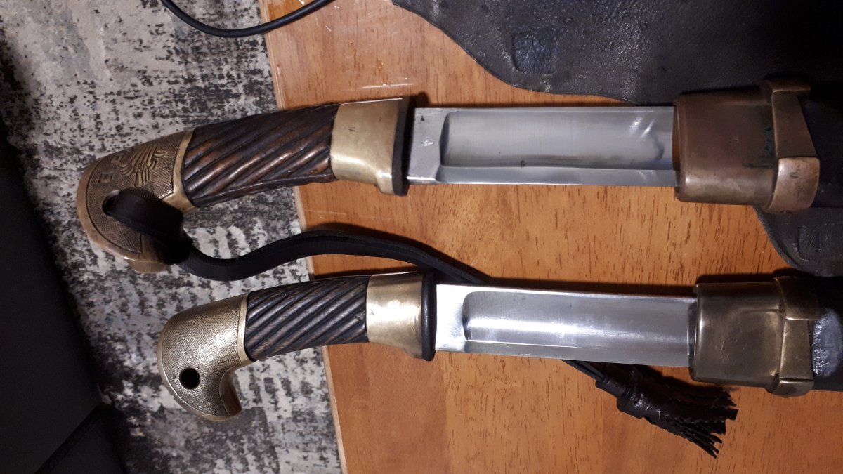 Друзья сегодня получил вот такую шашку. Помогите пожалуйста узнать всё ли с ней впорядке?Клейм нет.Ножны прошиты сыромятиной чтобы об голинище не обтерались. Читал инфу в том числе и наших форумчан по ней.Улыбнула версия про казаков перешедщих на сторону немцев..))И заказ третьего рейха.Позже скину размеры. Она большая.