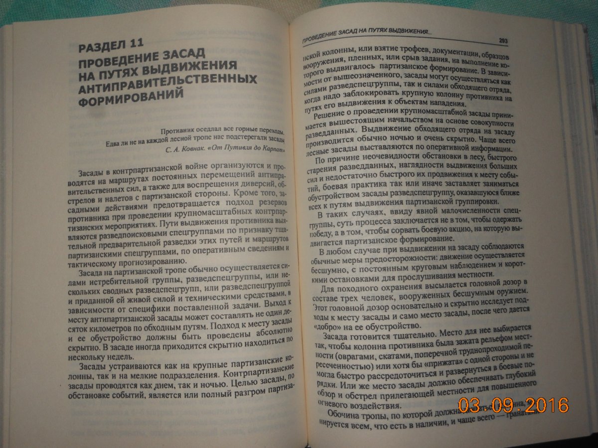 Книга представляет собой сборник методических инструкций по борьбе с бандформированиями в условиях пересеченной, горной и горно-лесистой местности. Эта книга является пособием, разработанным на основе контрпартизанской методики немецких егерей, советского МГБ, английского САС и американских "зеленых беретов", с применением опыта последнего времени.Цена 150 гр.Доставка Новая почта или укр почта на покупателе . .