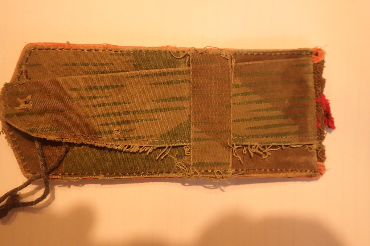 Погон "индпошив" соответственно. Поле погона сделано из шинельного американского сукна. Подбой из "осколка". Окантовка из неизвестной мне х.б. По пуге не скажу - но она могла быть поставлена после войны - скорее так и было, и изначально стояла полевая там...и носил этот старшина свои погончики на офицерской гимне, потому как погон под шнурок)