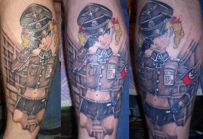 А у нас за татуировку в войска отправляли.... каким бы небыл спецом... И ваще это бредятина.... от избытка "ума" или при завышеной норме тестотерона.... Недавно видел на пляжу матрону лет 50-ти, с татуировкой какой то хрени на жопе... рисунок деформировался на целюлитной коже, и стал похож на огромную гематому...))))