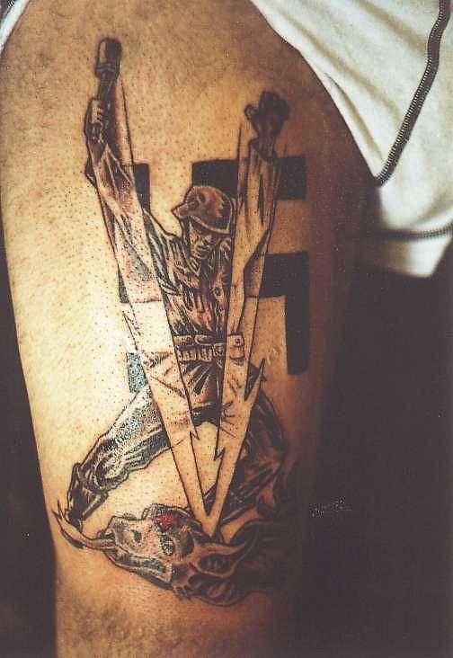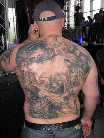 Совершенно верно under soldaten в теме тату скинхедов . К тату WWII отношения не имеют . А разукрашенные тела "Быков" восхищения не придают . ИМХО ..