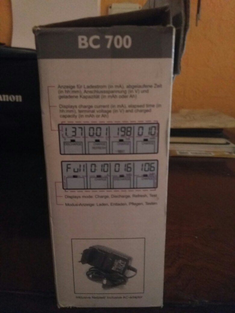 Легке б/у. Продаю за непотрібністю. Ціна 650 грн. Інфа з нету Technoline BC 700 - интеллектуальное зарядное устройсво с 4 независимыми каналами, LCD дисплеем и функциями заряда, разряда, теста и восстановления аккумуляторов. Данное зарядное устройство имеет весь необходимый набор функций для заряда, анализа и контроля аккумуляторов. Technoline BC 700 подойдет в первую очередь для профессионального использования, например для фотографов, фоторепортеров, моделистов - одним словом для тех пользователей, которые часто заряжают батареи, хотят иметь широкий набор функций получать максимум информации об аккумуляторах. Данное зарядное устройство предоставляет вам возможность получать всю необходимую информацию об аккумуляторе: время заряда, емкость каждого аккумулятора, напряжение аккумулятора, ток заряда/разряда по каждому каналу. Вся информация отображается на специальном ЖК дисплее. В Technoline BC-700 вы можете самостоятельно установить ток заряда, который максимально точно подойдет именно для ваших аккумуляторов (200 mA, 500 mA или 700 mA на ваш выбор). Technoline BC-700 - интеллектуальное зарядное устройство при помощи которого можно заряжать, разряжать, тестировать и даже восстанавливать аккумуляторы! Тип: интеллектуальное зарядное устройство; Имеет ЖК дисплей, где показывается весь процесс заряда аккумуляторов (на дисплее показывается сила тока, время зарада, выбранная функция, ); Количество каналов: 4 абсолютно независимых канала; Совместимость аккумуляторов: NiCd и NiMH; Типоразмер аккумуляторов: может одновременно заряжать аккумуляторы размера АА и размера ААА ; Питание: от сети 100-240 В, 50/60Гц, европейская вилка; Сила тока при зарядке: 200 mAh, 500mAh, или 700mAh (настраивается пользователем); Имеет встроенный детектор поврежденных аккумуляторов; Заряд: Зарядное устройство имеет 4 абсолютно независимых канала и заряжает каждый аккумулятор отдельно. Ток заряда можно выбрать самостоятельно - 200 mA, 500 mA или 700 mA. Также есть функция подзарядки малым током после полного заряда аккумуляторов; Разряд: Функция разряда аккумуляторов для более эффективной последующей зарядки и снижения эффекта памяти; Восстановление: Данная функция очень полезна тем, что позволяет восстановить аккумуляторы, которые потеряли свою первоначальную ёмкость. Происходит тренировка путем последовательных циклов заряд/разряд до полного восстановления ёмкости.; Тест: Позволяет узнать реальную ёмкость аккумулятора - сначала аккумуляторы полностью заряжаются, затем разряжаются постоянным током и на дисплее показывается реальная ёмкость. После данного цикла аккумуляторы опять полностью заряжаются.; Капельный заряд: После того, как аккумулятор полность заряжен в любом из режимов, зарядное устройство будет продолжать подзаряжать аккмуляторы малым током для поддержания их полностью заряженными; Индивидуальный мониторинг на LCD: На дисплее для каждого аккумуляторного отсека с отображением тока заряда, время заряда, установившееся напряжение и накопленная емкость (mAh или Ah);; Независимая одновременная зарядка: Независимая зарядка аккумуляторов типоразмеров "АА" и "AAA"; Определение окончания процесса зарядки: Автоматическое определение окончания цикла зарядки по падению напряжения ( -dV ); Определение перегрева: Для защиты аккумуляторов от перезаряда. Установлено 2 датчика температуры (по 1 на пару аккумуля