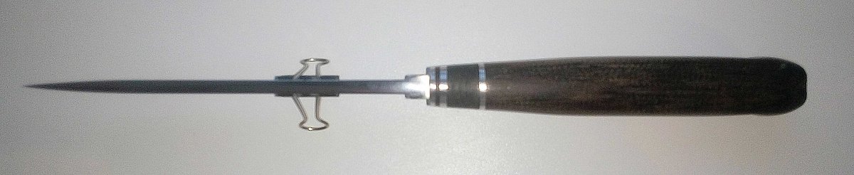 Сталь 95х18 тв. 59 ед. 125х4.5х23 . Вставки нержавейка, мореный дуб,текстолит.