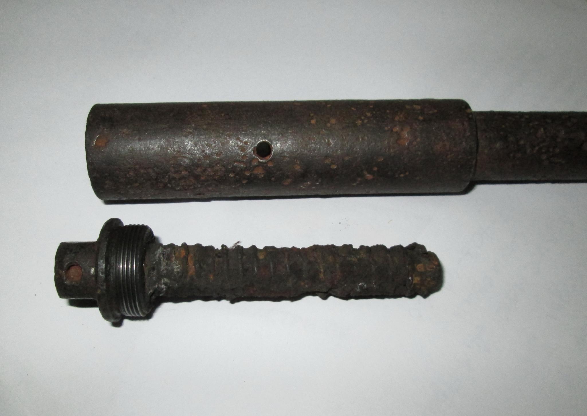 Состояние по фото.Металл крепкий,не кислочен,резьбы в порядке,имеет два небольших сквозных отверстия от коррозии(на средней и малой трубке),пружина сгнила.Разобран не до конца.Пересыл Новой Почтой за счет покупателя.Оплата на карточку Приват Банка.Цена-350гр.