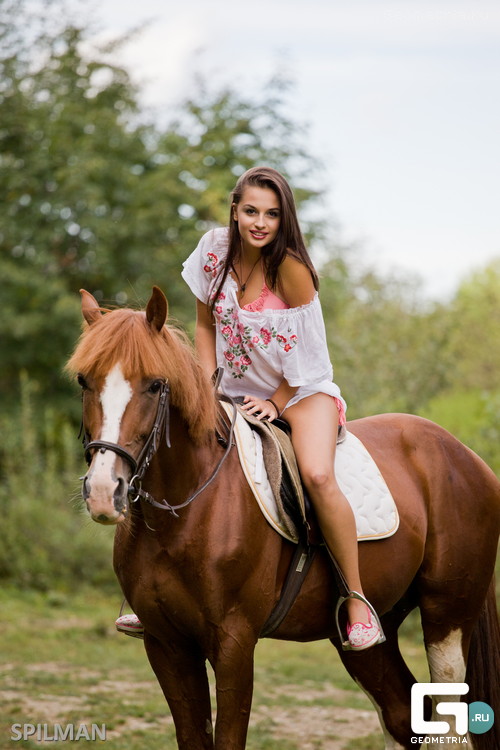 Как в той загадке: У какой скотинки,писька на спинке(девочка на лошади)
