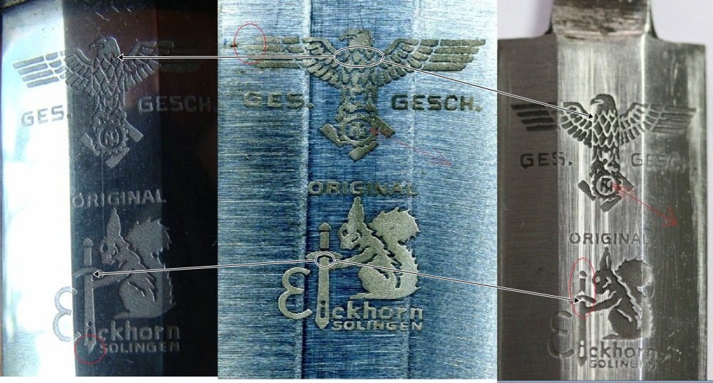 Очень наглядно.Спасибо.Но все-таки,прошу обратить внимание,что уже на третьем Тено на клейме пята клина идет перед гардой прямая,а не треугольная!В инете на фото Кригсы,общевойсковики и СА у Айк-на много пересмотрел-у всех прямая!?Может-это не имеет значение.Хотелось бы докопаться до истины.Возможно это вызовет не только интерес учавствующих в теме,но и тех,кто читает тему и посмотрят на своих Белок?