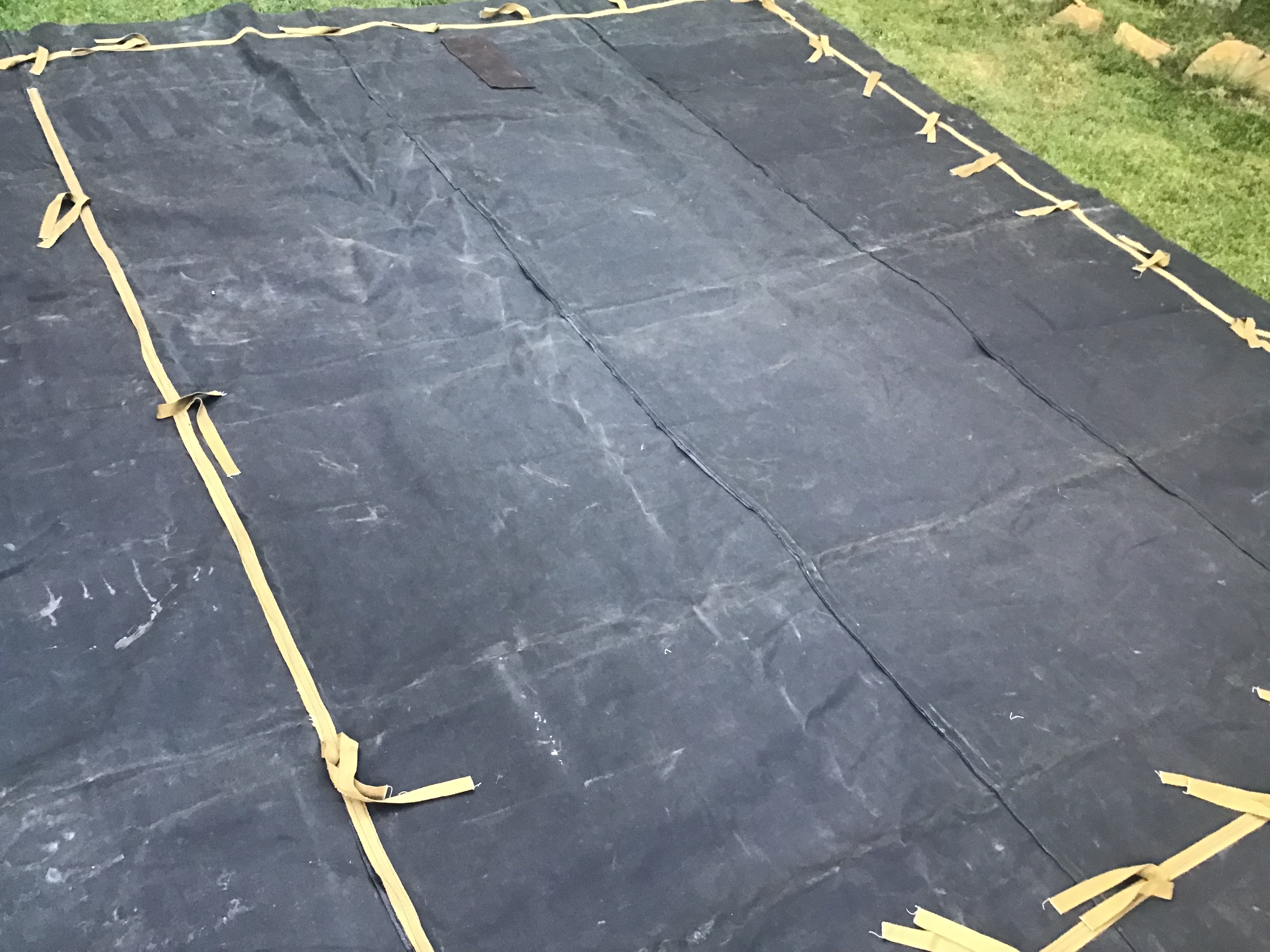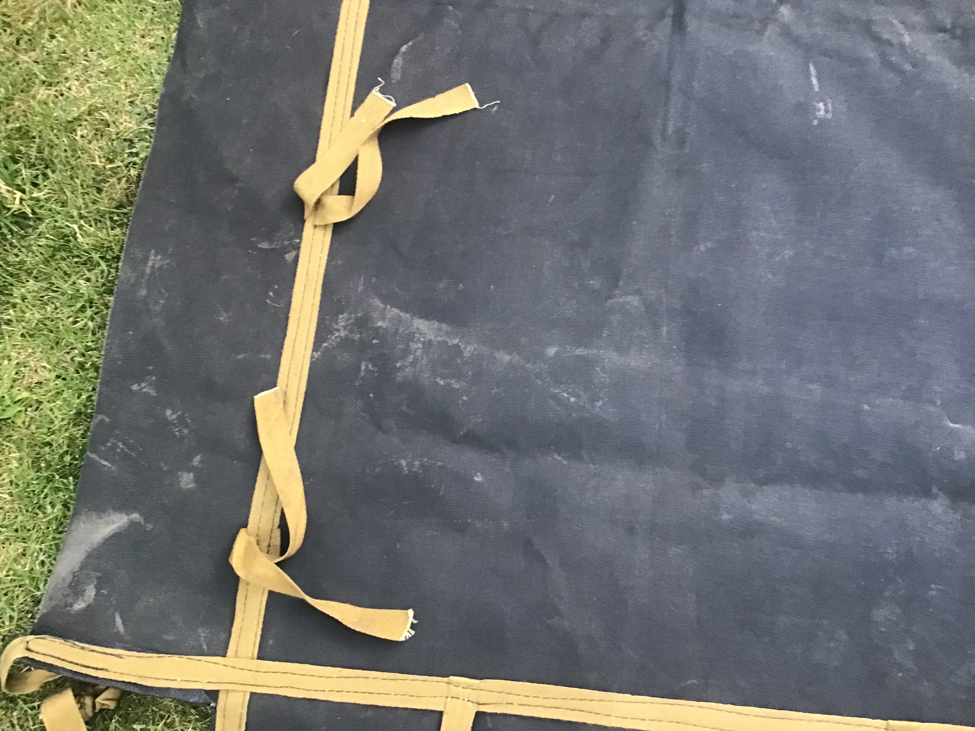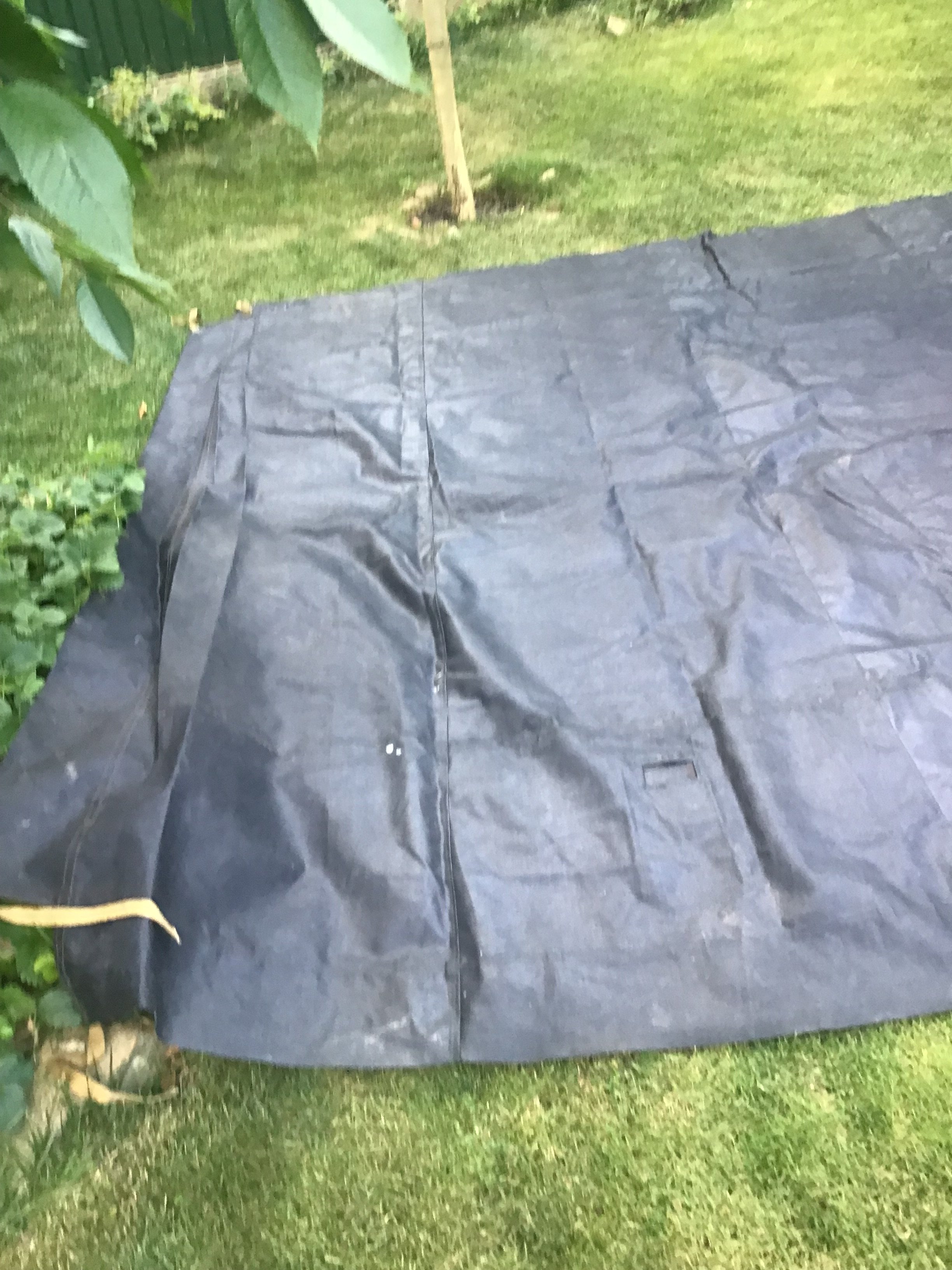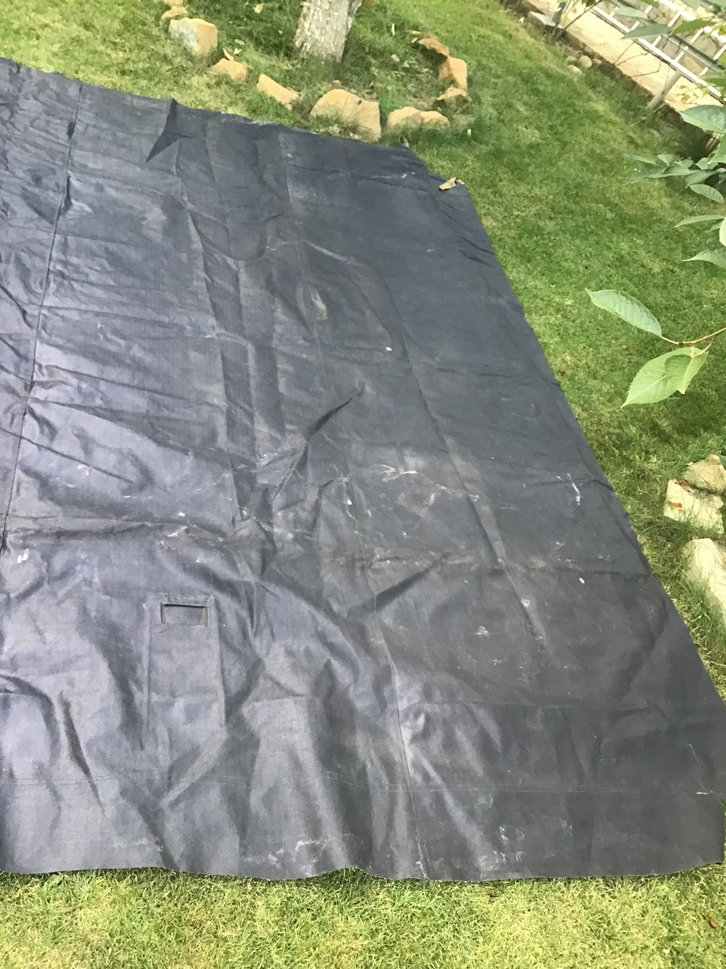 Тент новый, размер 5,25х3,50 но есть ньюансы, две небольшие дырочки размером 10 коп и как лежал сложенный на складках в некоторых местах есть немного потертости. На фото все видно. Цена 2200грн