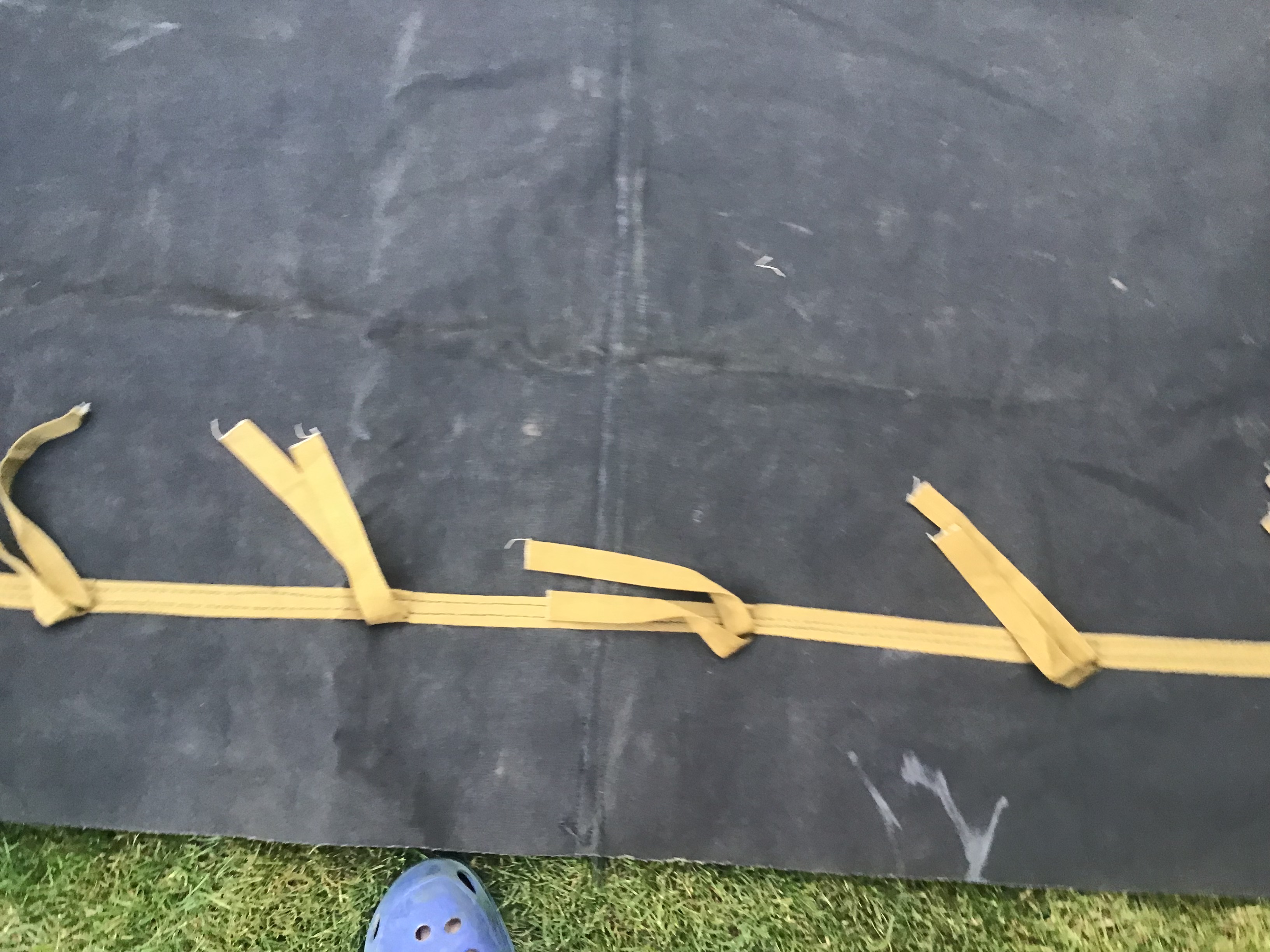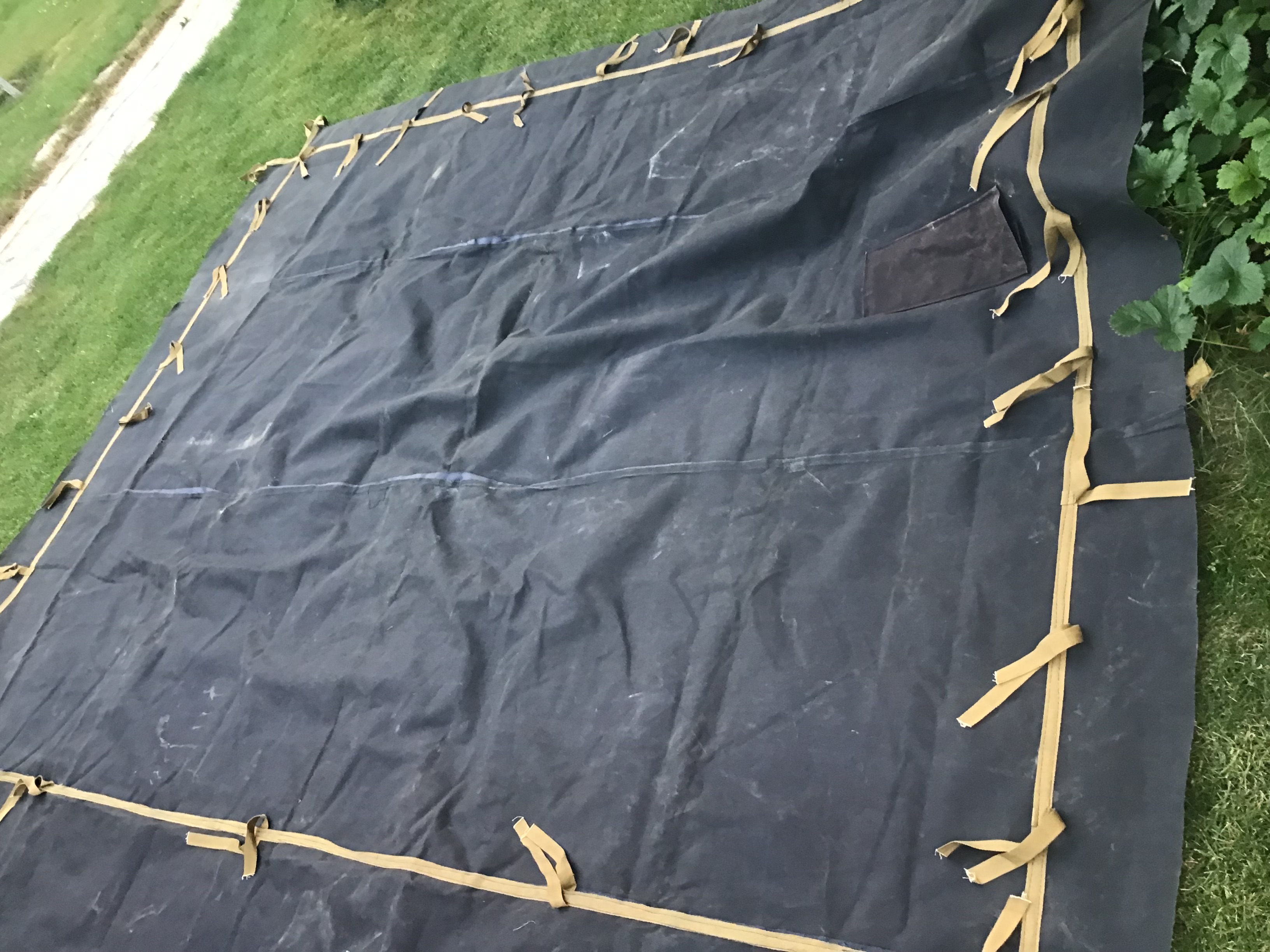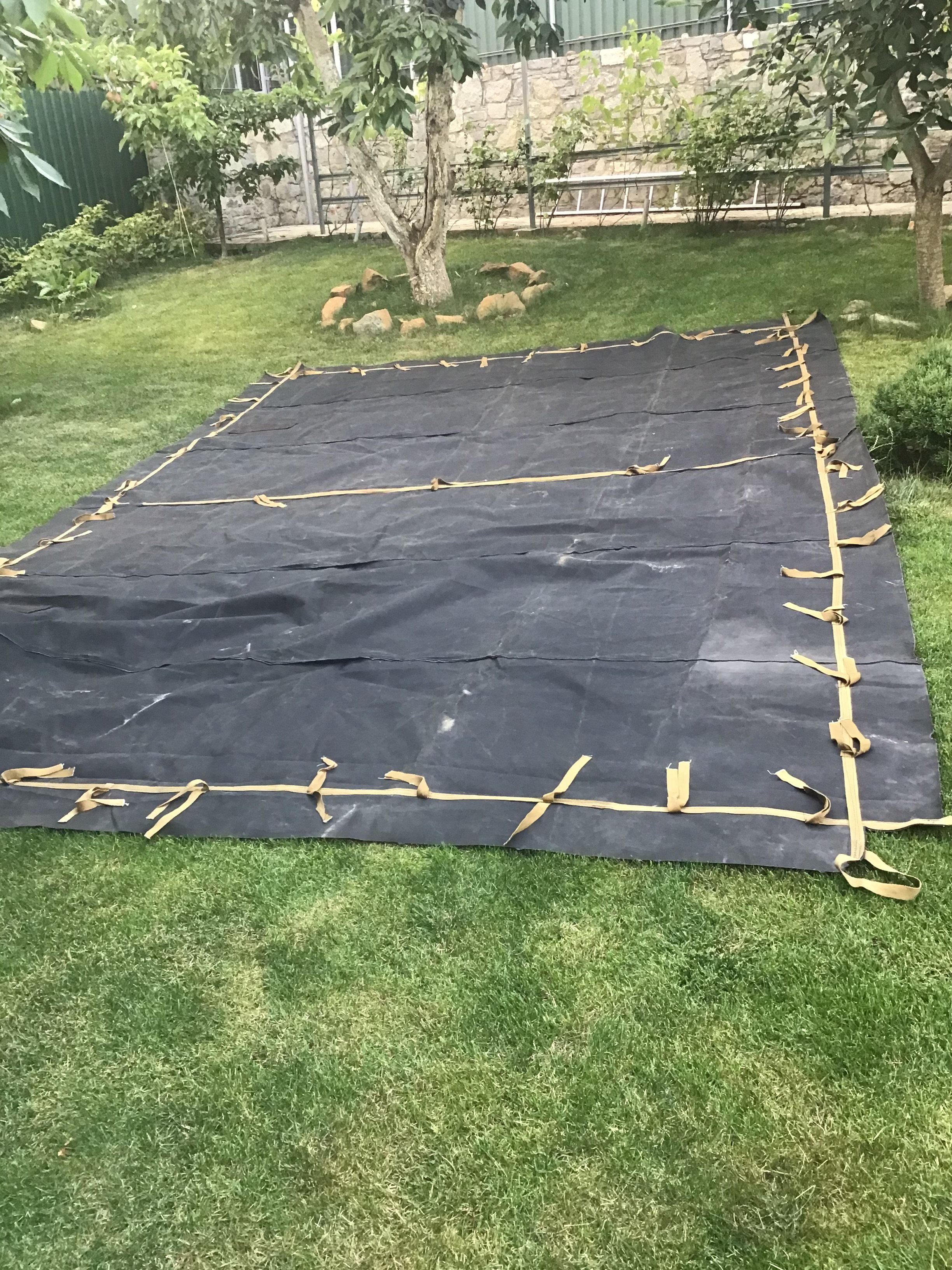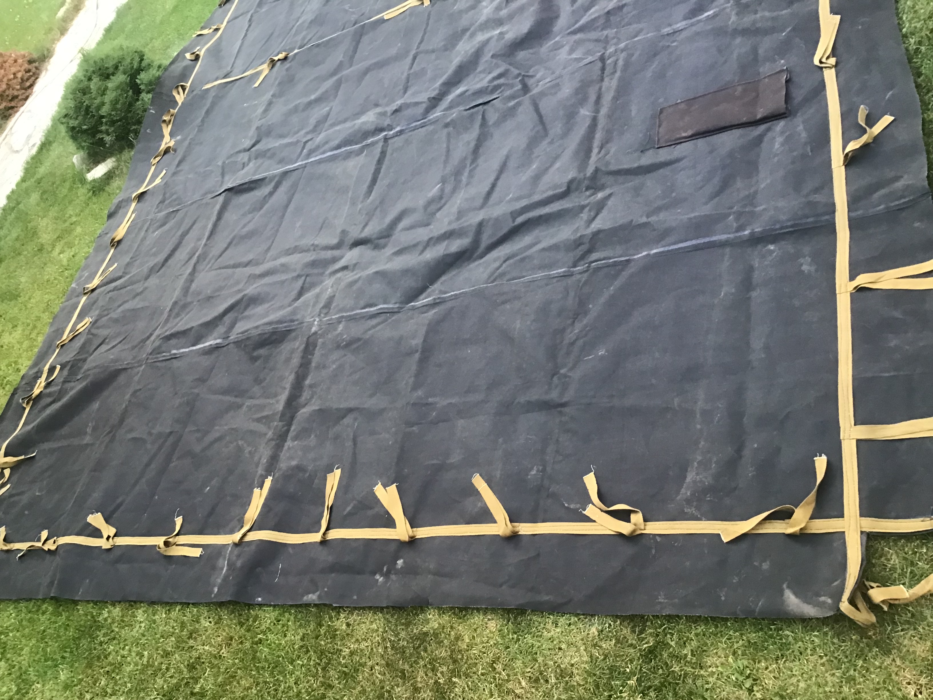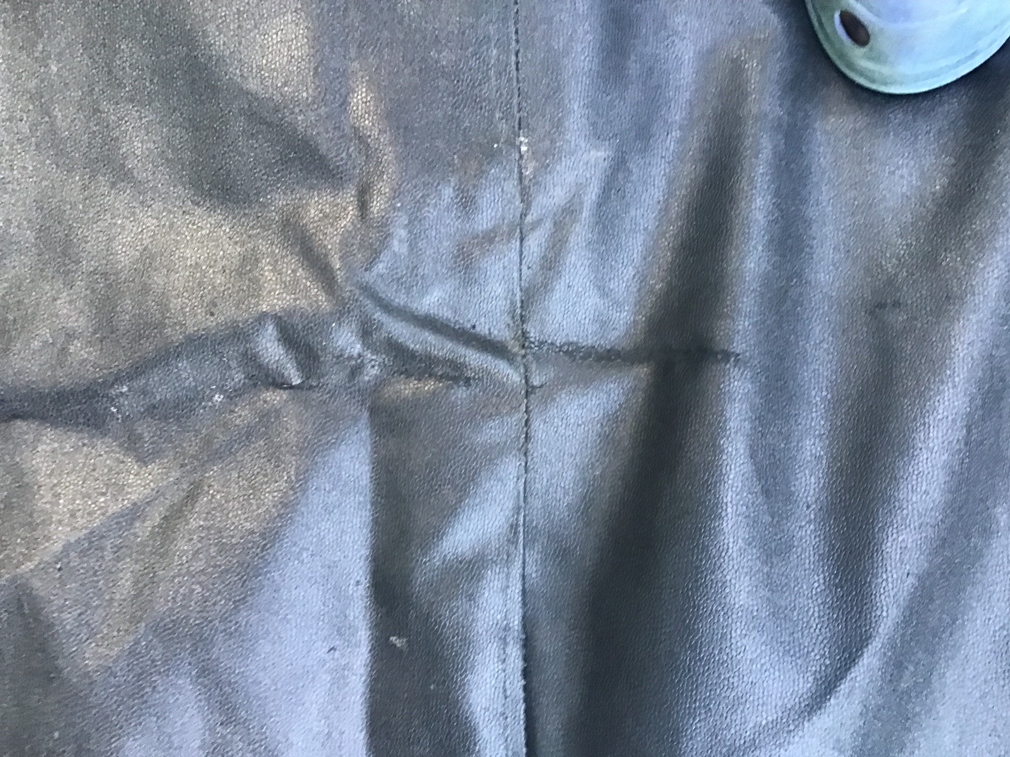 Тент новый, размер 5,25х3,50 но есть ньюансы, две небольшие дырочки размером 10 коп и как лежал сложенный на складках в некоторых местах есть немного потертости. На фото все видно. Цена 2200грн
