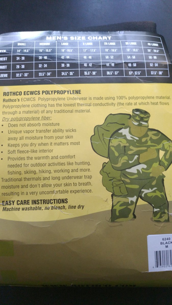Термобелье rothco ecwcs level 2.