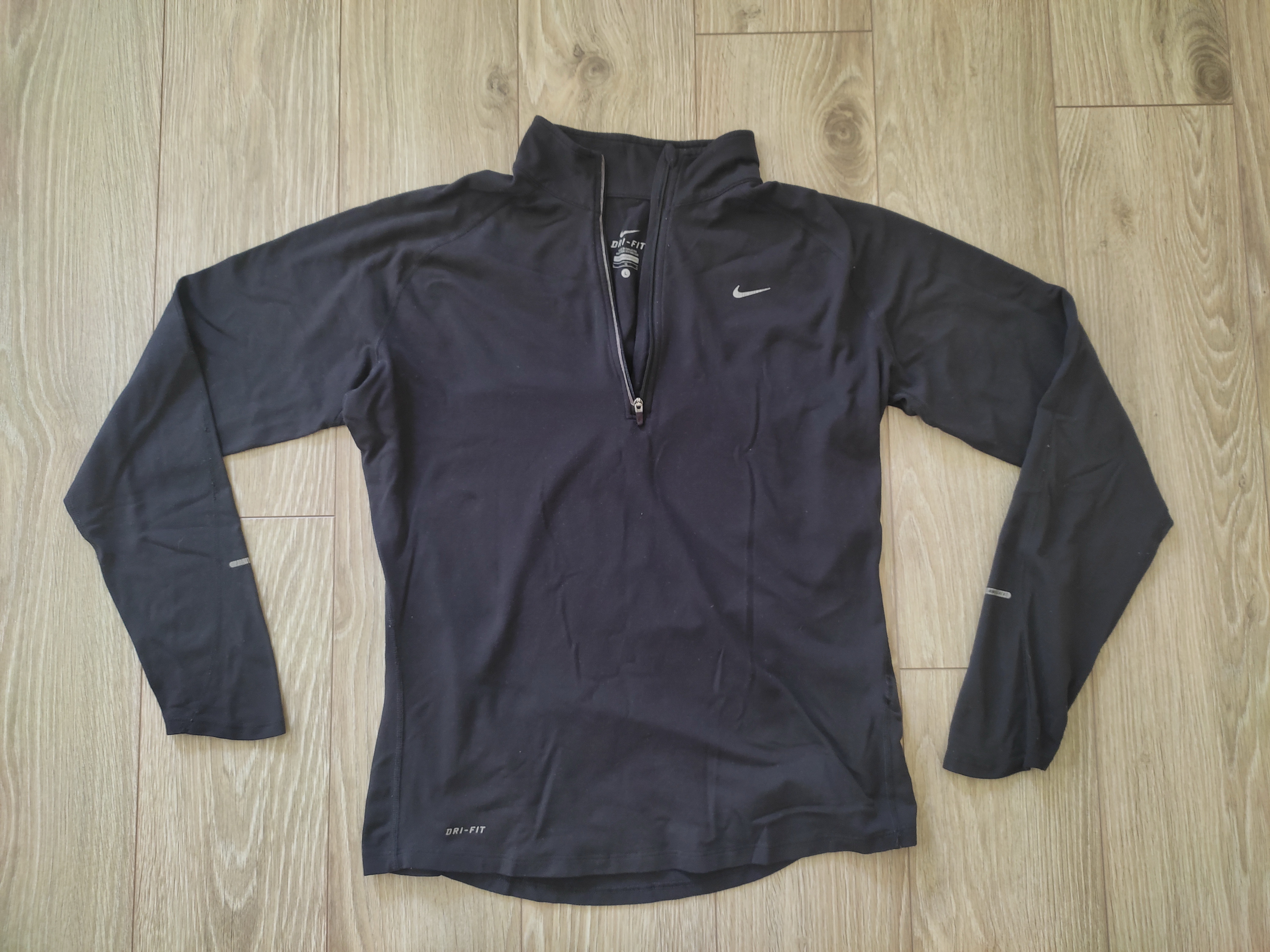 Лот 2 Зип термуха NIKE Dri-FIT Технологія, що використовується у спортивному одязі, яка базується на двох типах волокон - гідрофобних і гідрофільних. Вони запобігають поглинанню вологи та підвищують ефективність вентиляції. Легка і дихаюча, вона створена, щоб допомогти вам почуватися впевнено з кожним кроком. Склад: 100% поліестер Технологія Nike Dri-FIT відводить піт від шкіри, прискорюючи його випаровування, допомагаючи вам залишатися сухими та почуватися комфортно Конструкція із застібкою-блискавкою дає змогу легко надягати та знімати кофту Світловідбивний логотип. Стан не поганий, на фото видно. На 50-й розмір сідае щільно ПРОДАНА